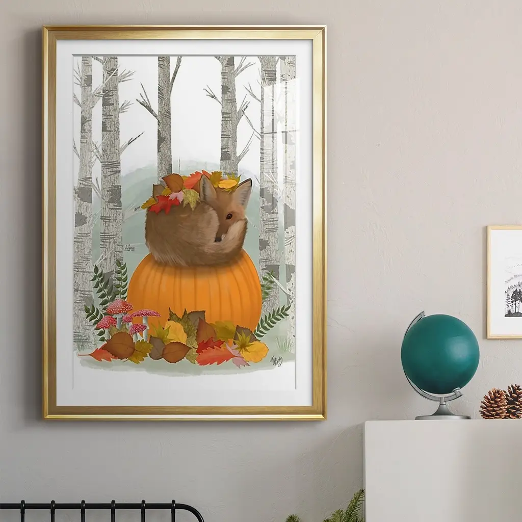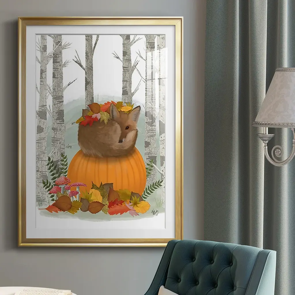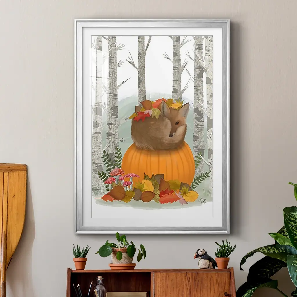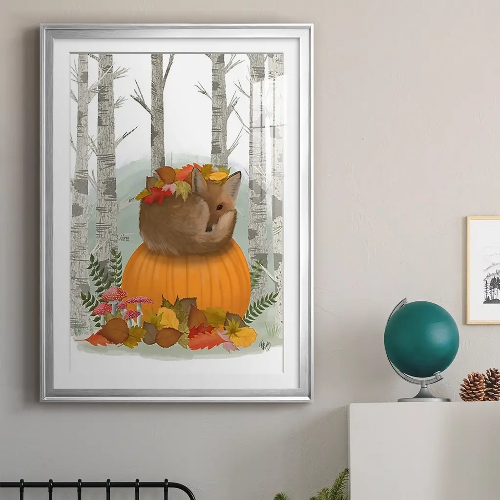 Fox Curled On Pumpkin Premium Framed Print - Ready To Hang - 30.5x42.5 - Silver