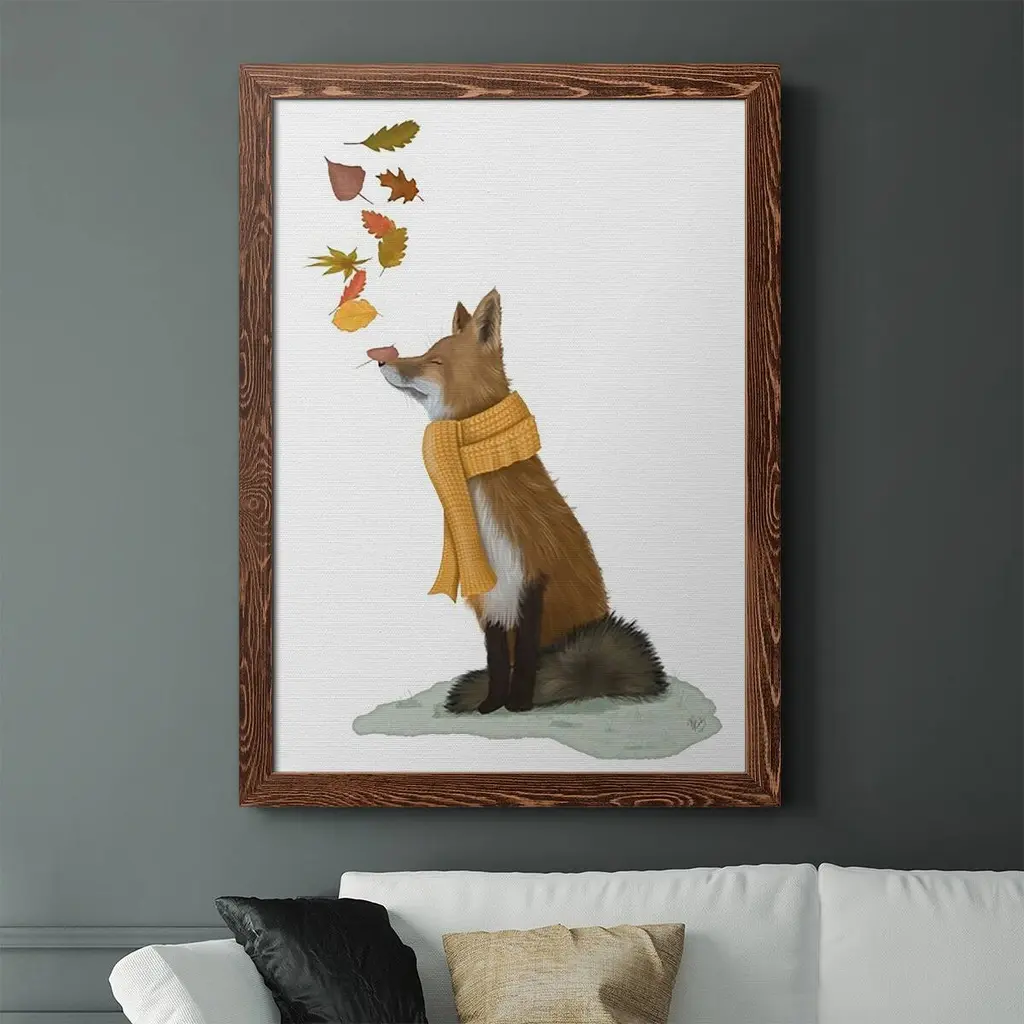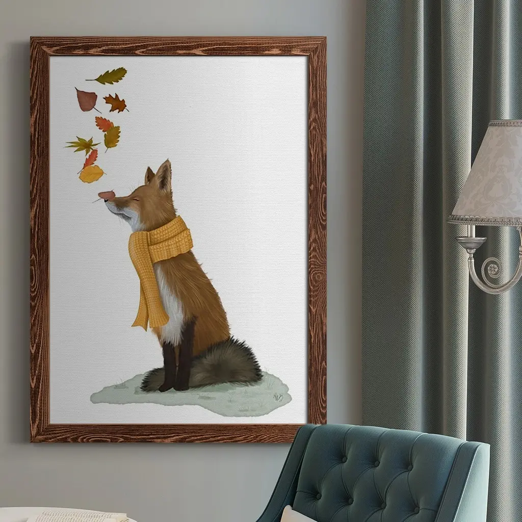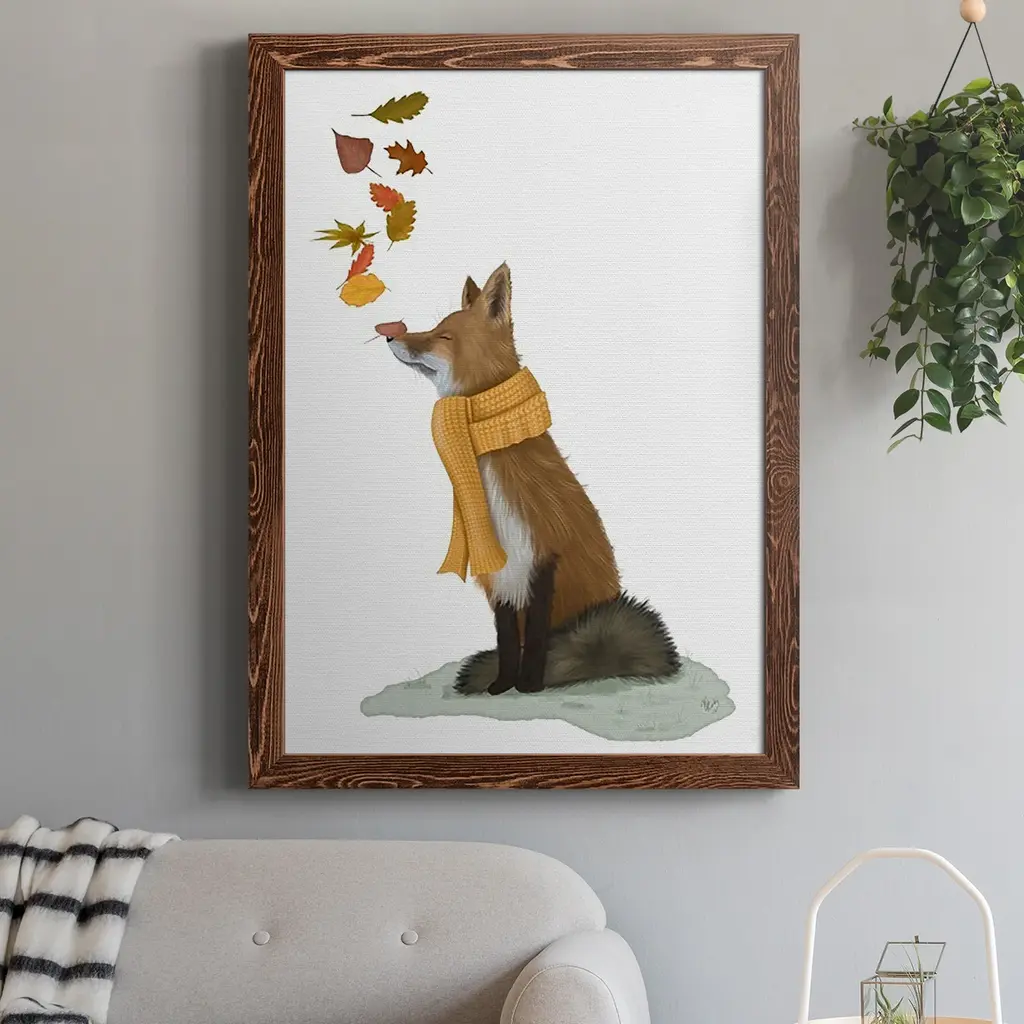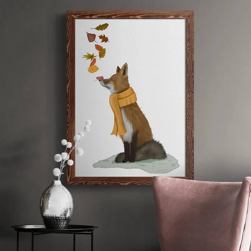 Fox Leaves On Nose-Premium Framed Canvas - Ready To Hang - 27.5x37.5 - Grey