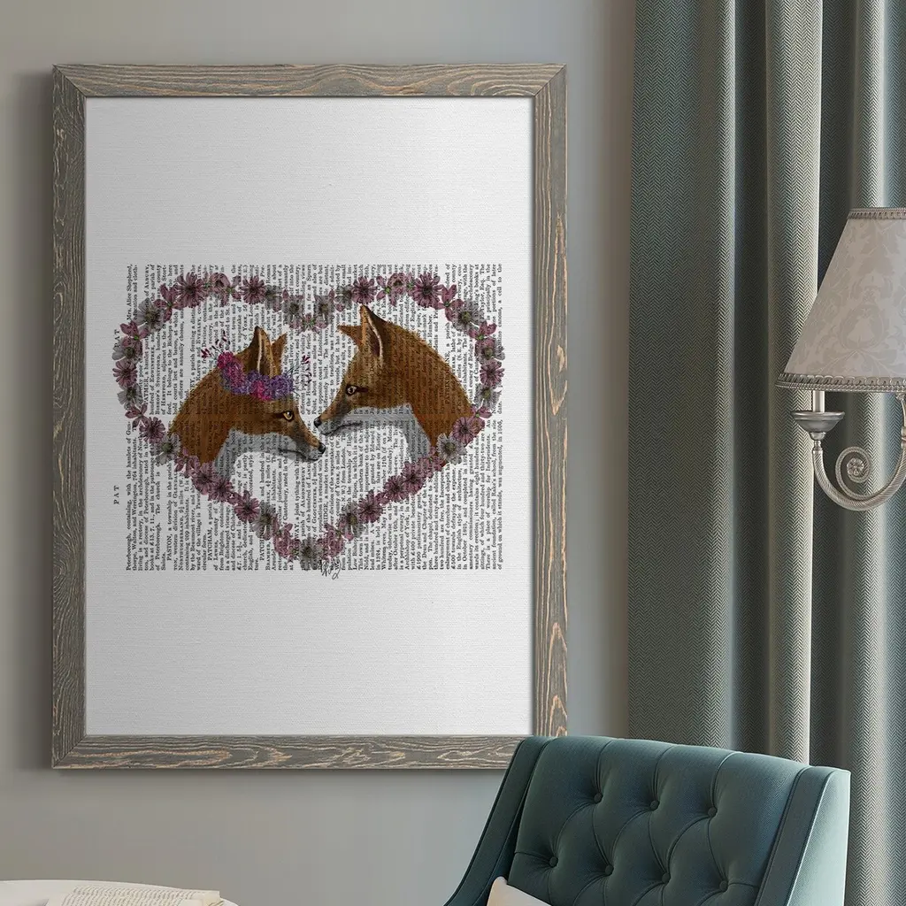 Foxes In Flowers-Premium Framed Canvas - Ready To Hang - 27.5x37.5 - Black
