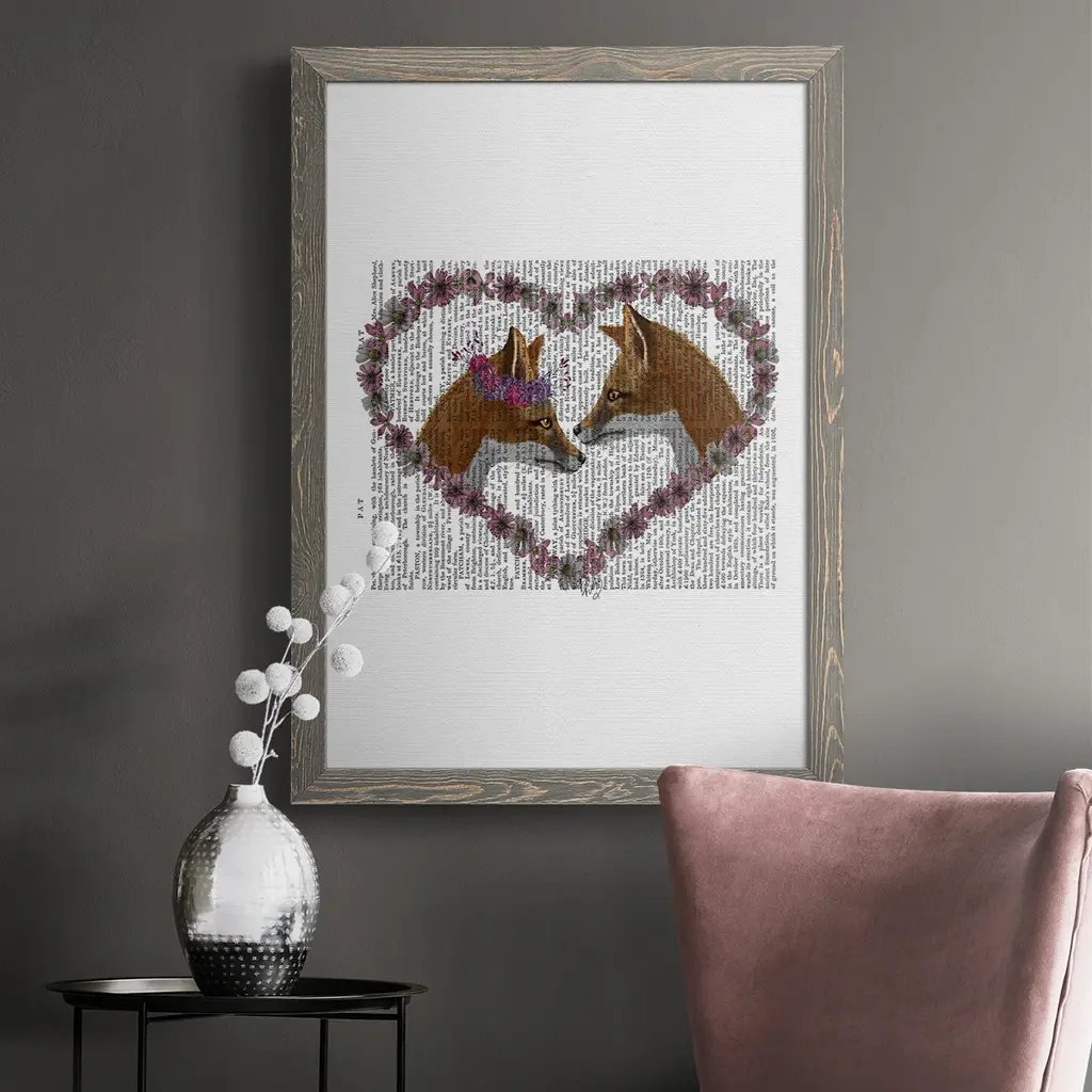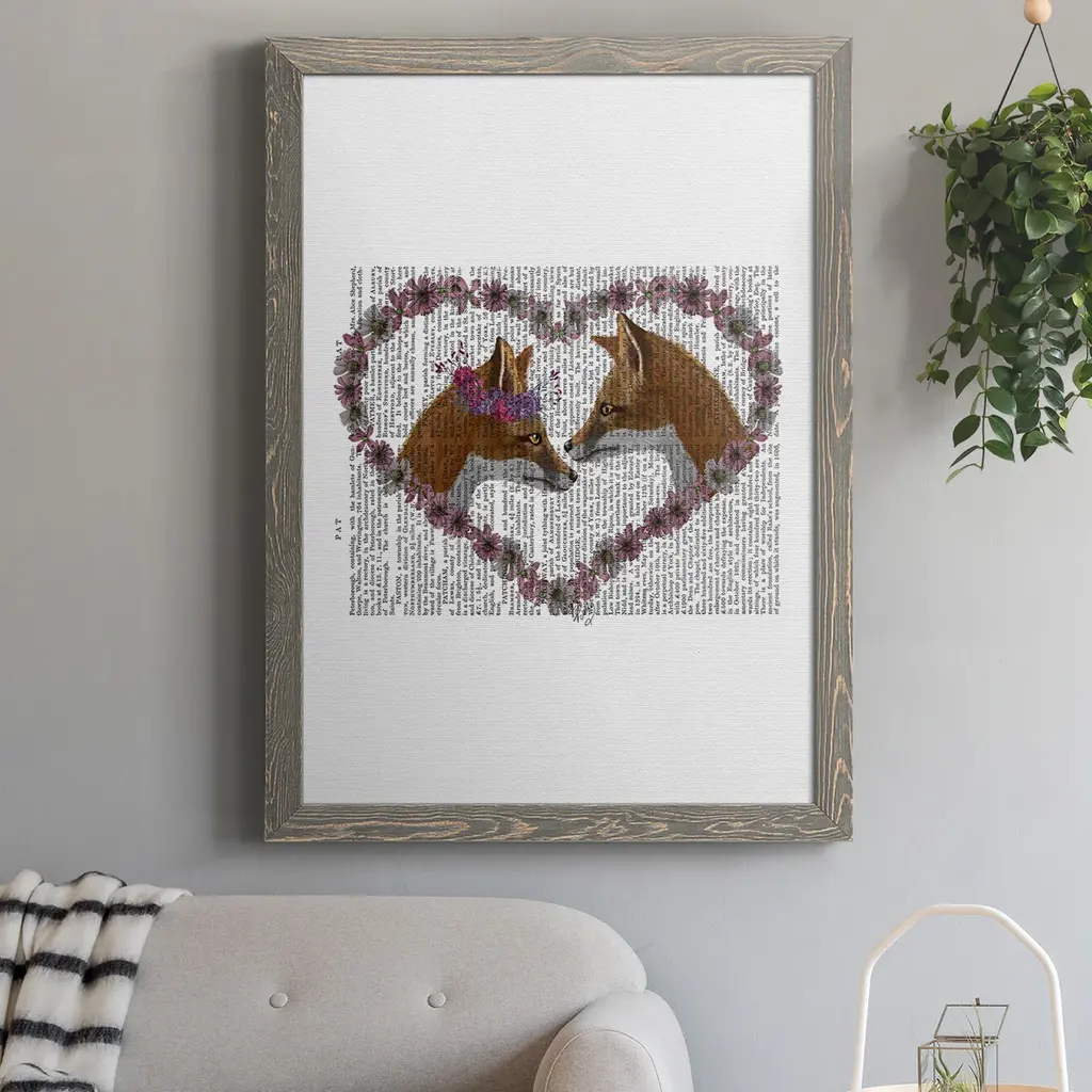 Foxes In Flowers-Premium Framed Canvas - Ready To Hang - 27.5x37.5 - Maple