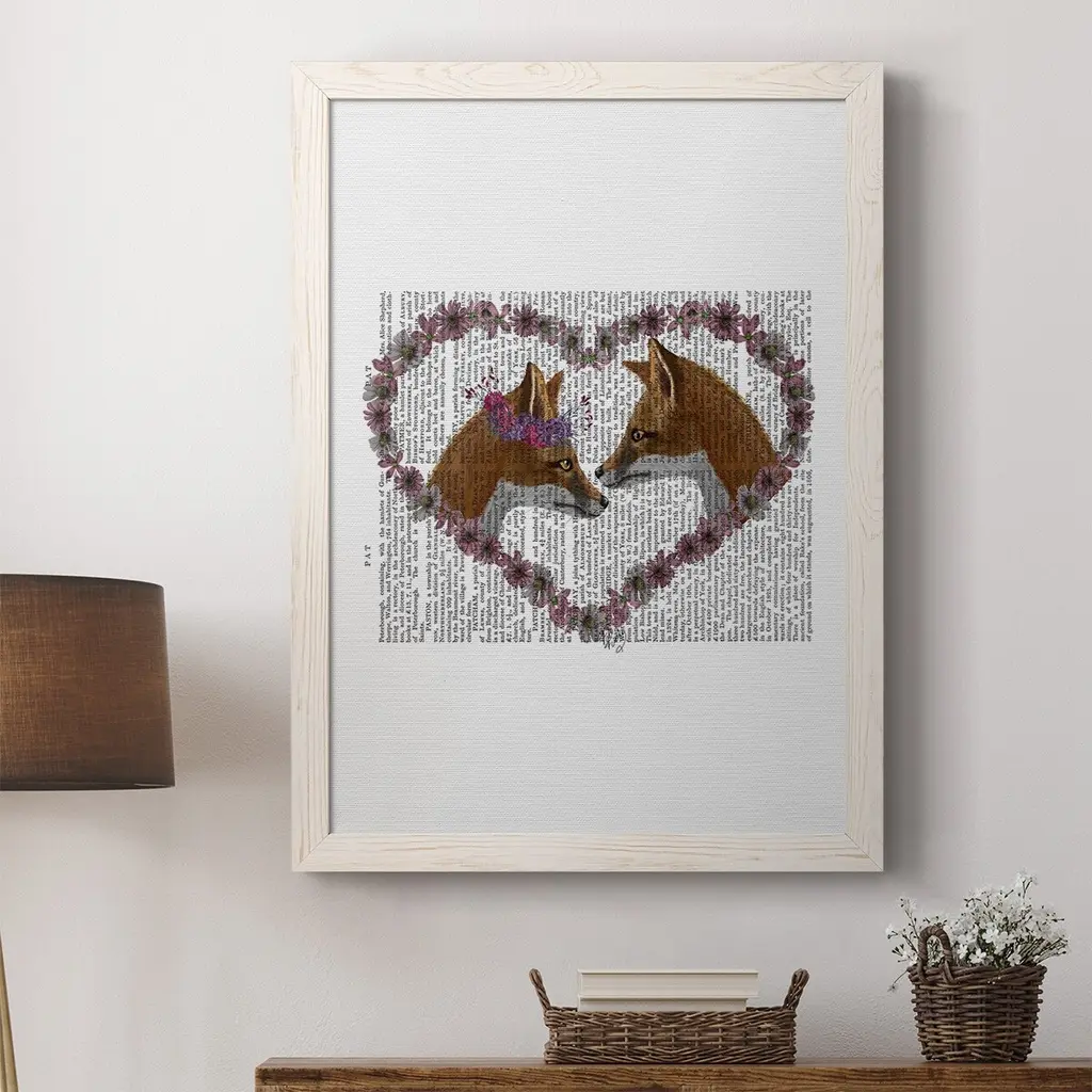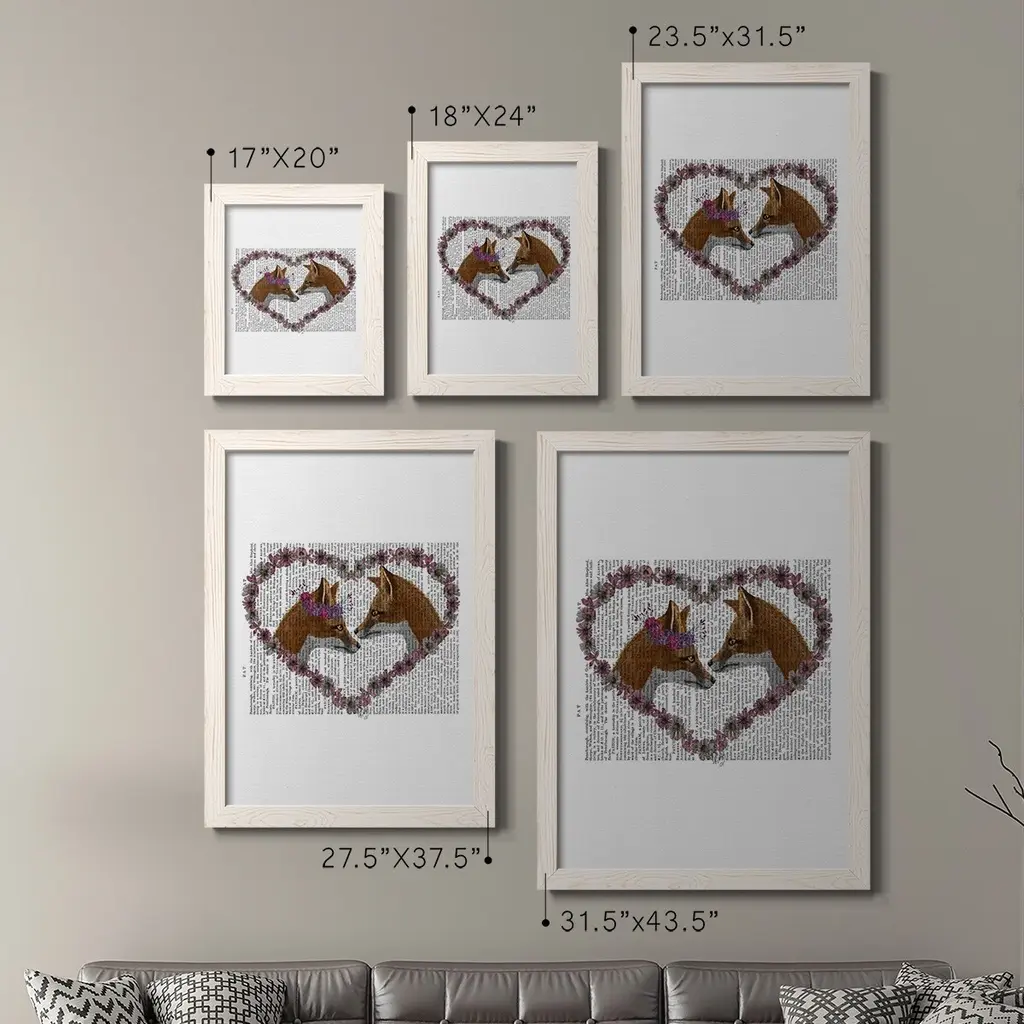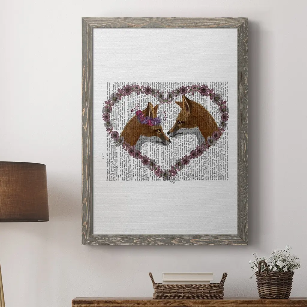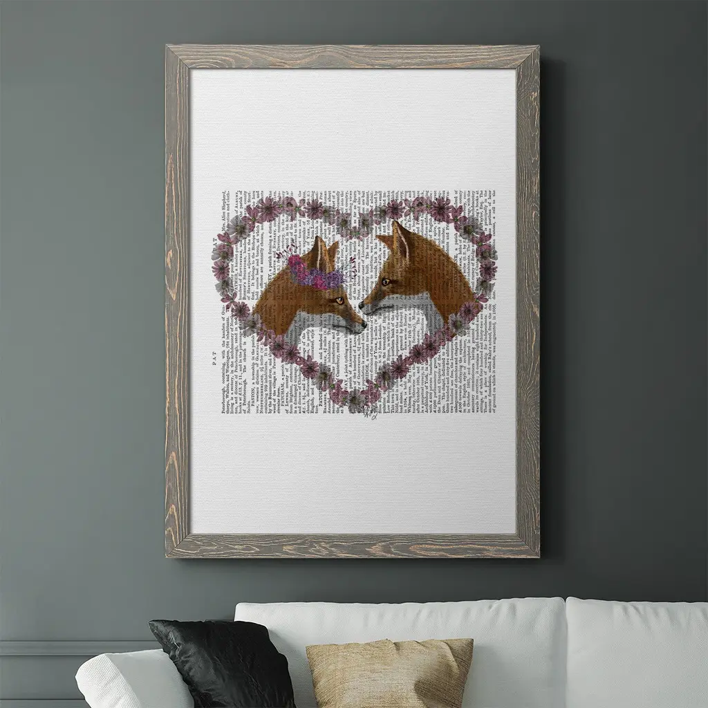 Foxes In Flowers-Premium Framed Canvas - Ready To Hang - 27.5x37.5 - Walnut