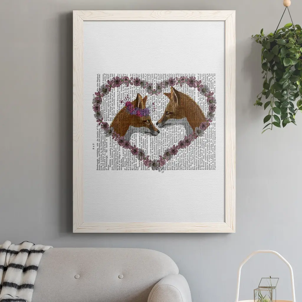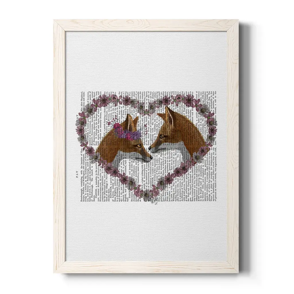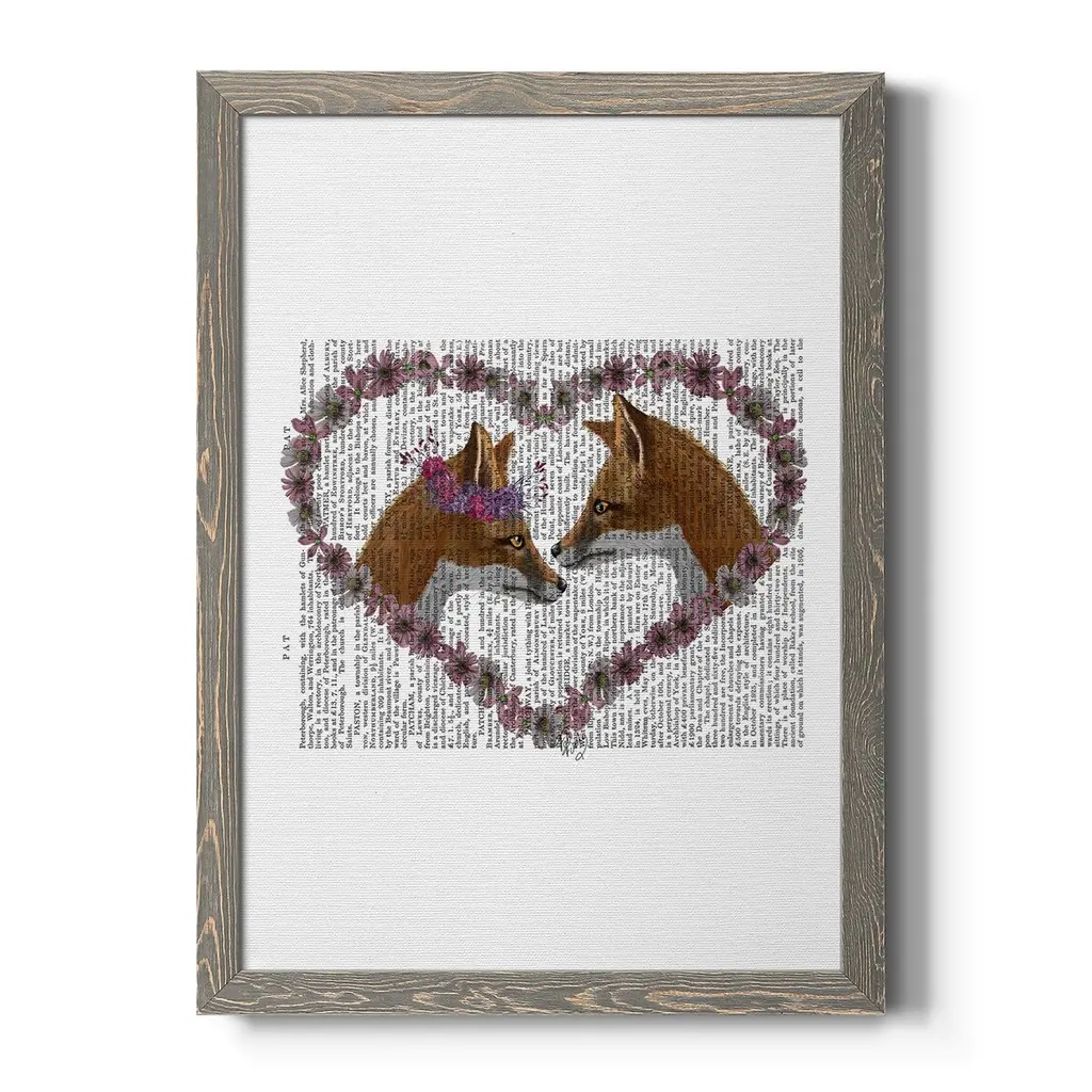 Foxes In Flowers-Premium Framed Canvas - Ready To Hang - 27.5x37.5 - White