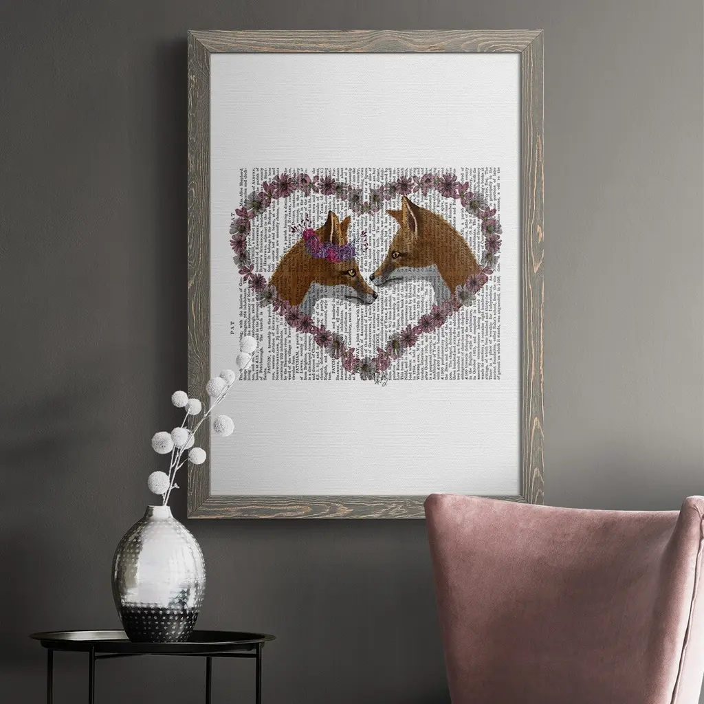 Foxes In Flowers-Premium Framed Canvas - Ready To Hang - 31.5x43.5 - Black