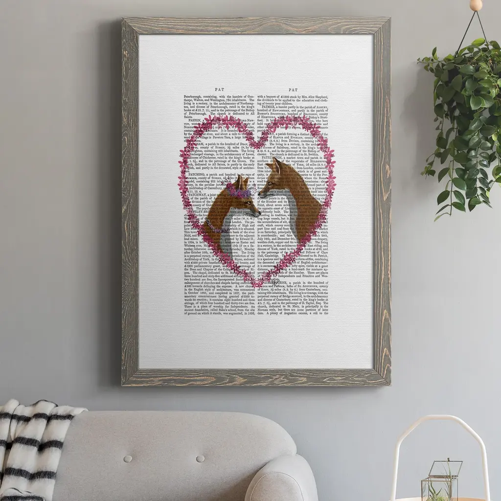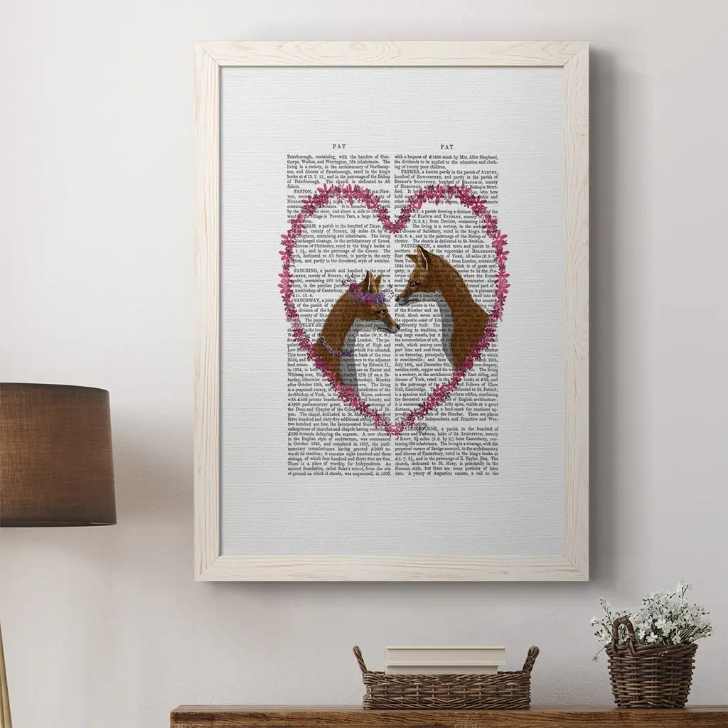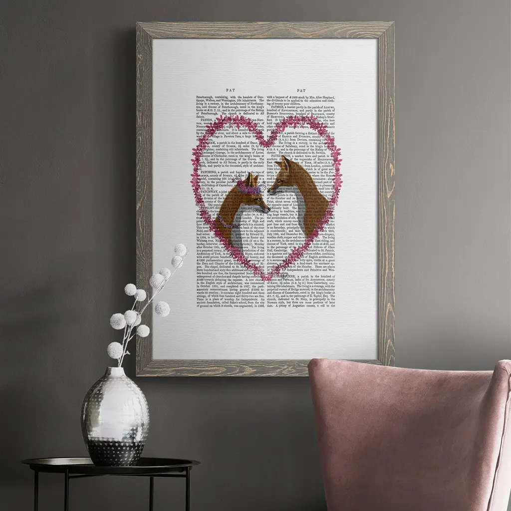 Foxes In Pink Heart-Premium Framed Canvas - Ready To Hang - 27.5x37.5 - White