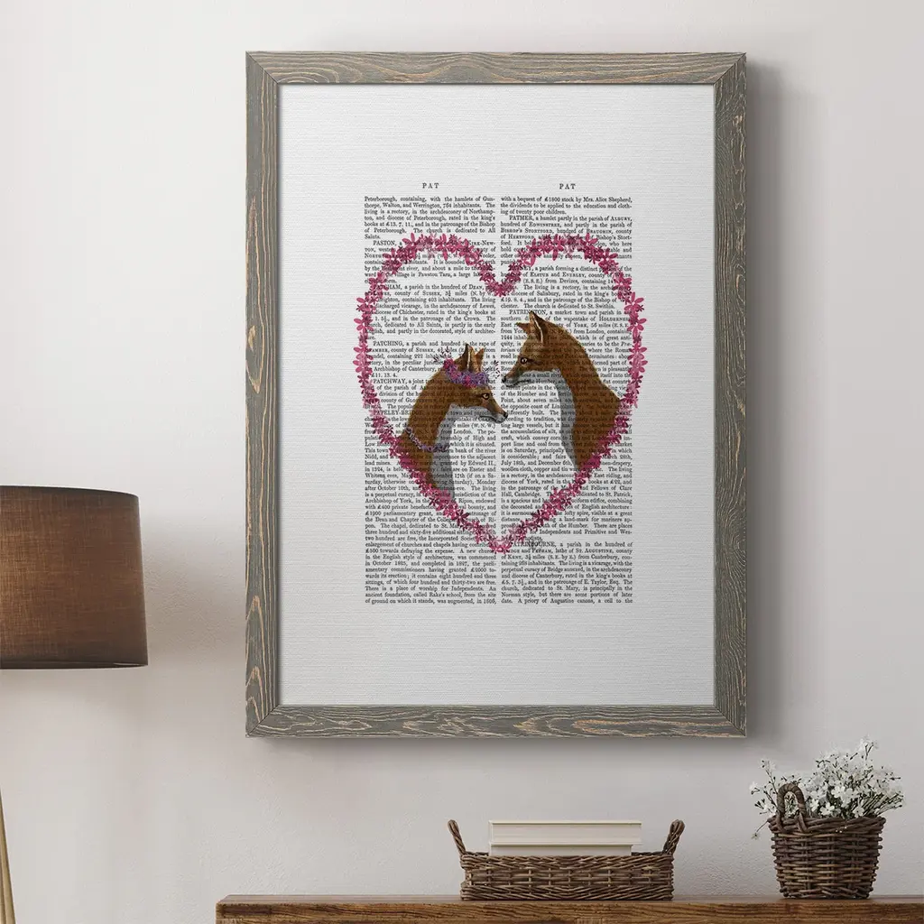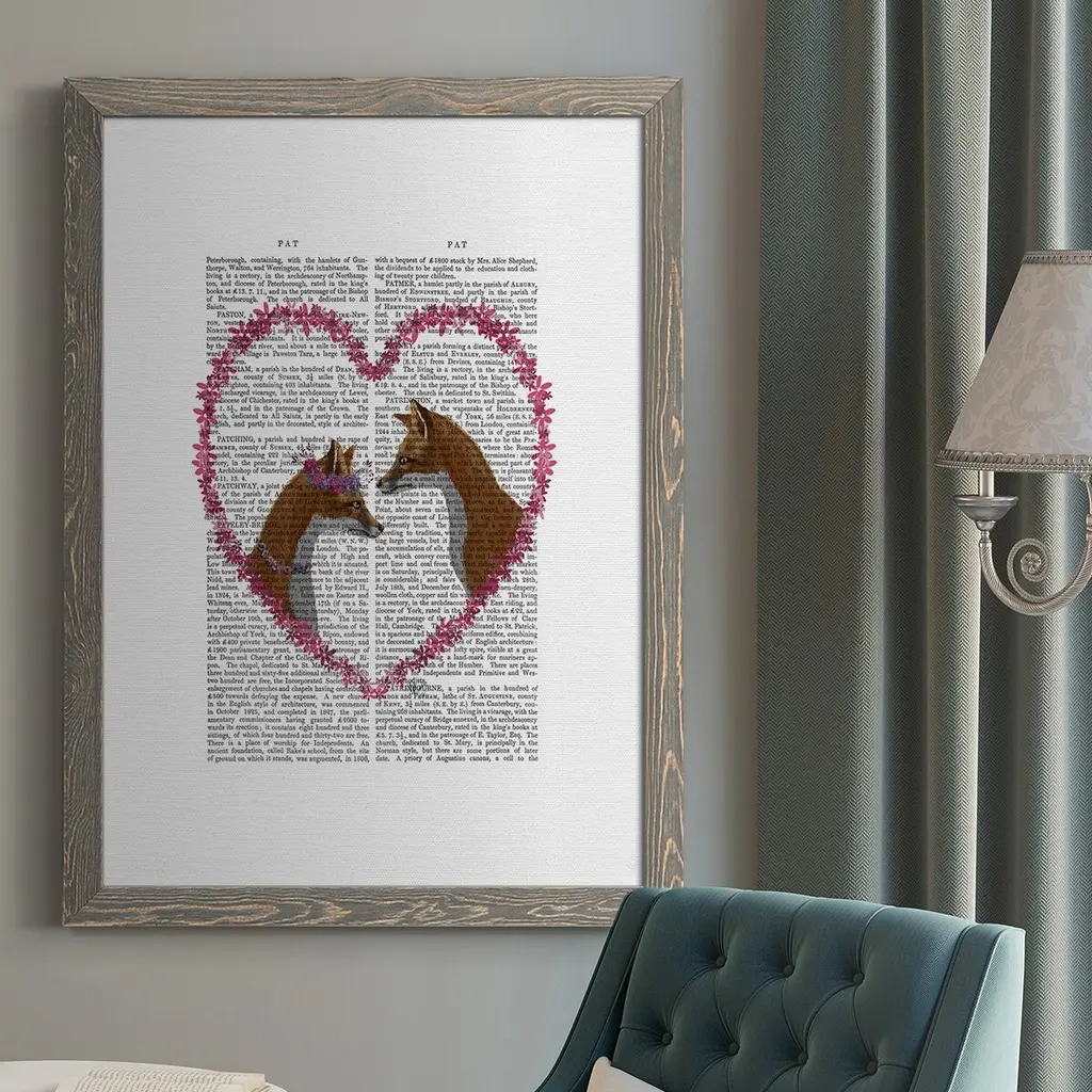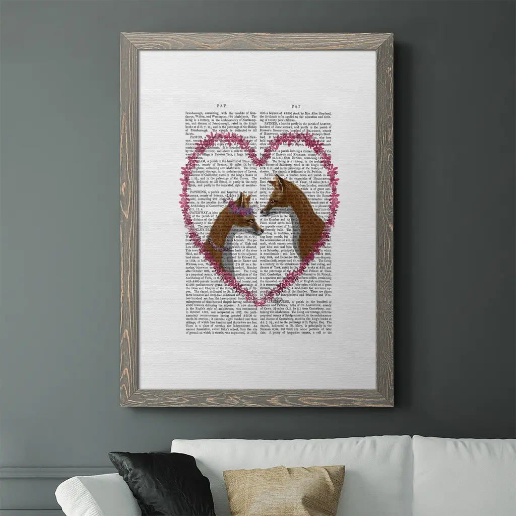 Foxes In Pink Heart-Premium Framed Canvas - Ready To Hang - 31.5x43.5 - White