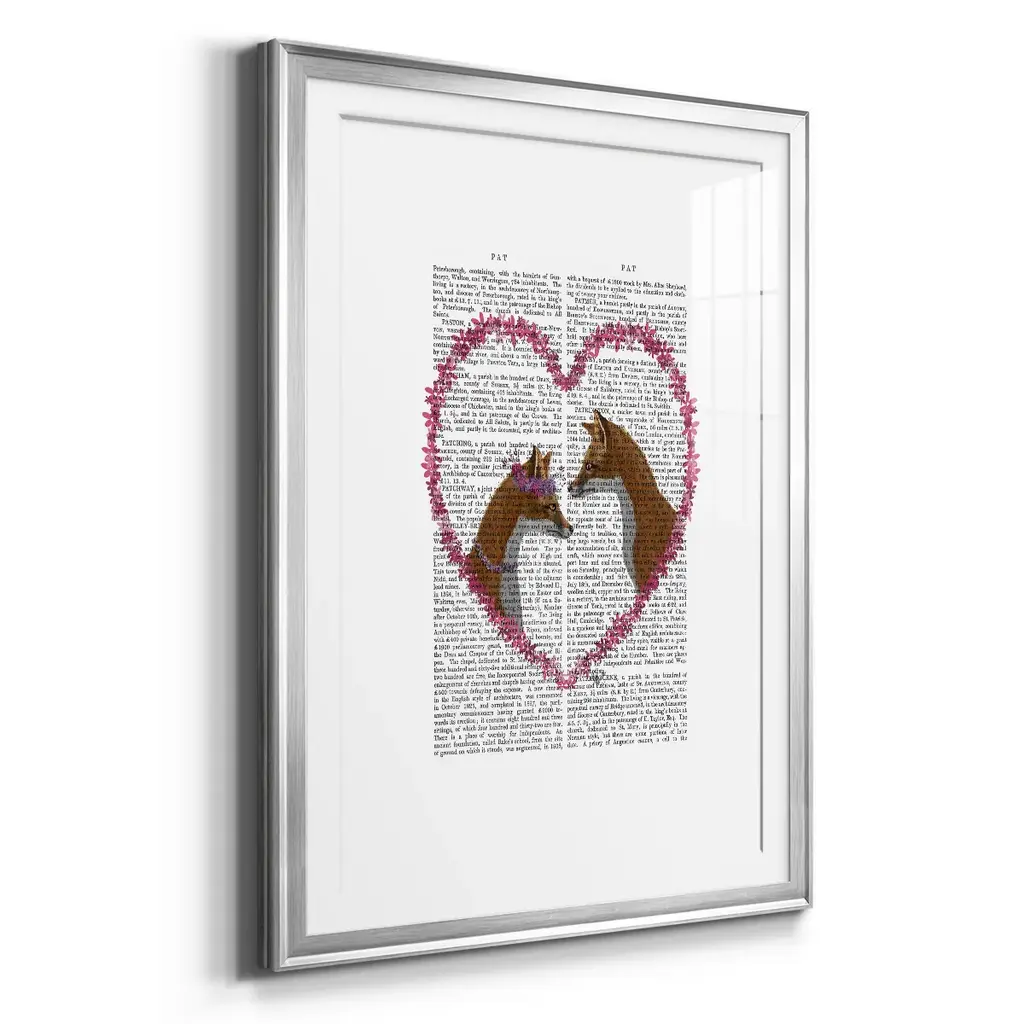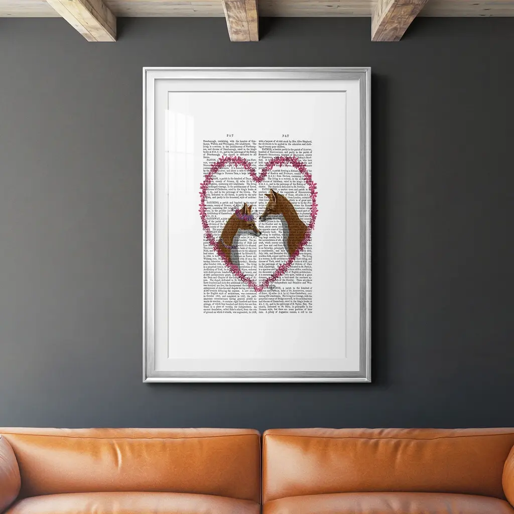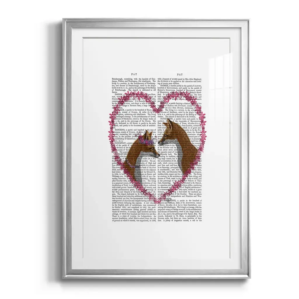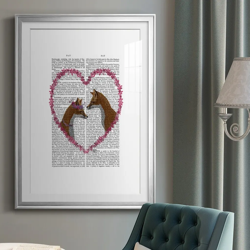 Foxes In Pink Heart Premium Framed Print - Ready To Hang - 26.5x36.5 - Silver