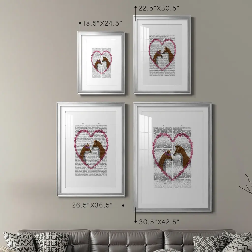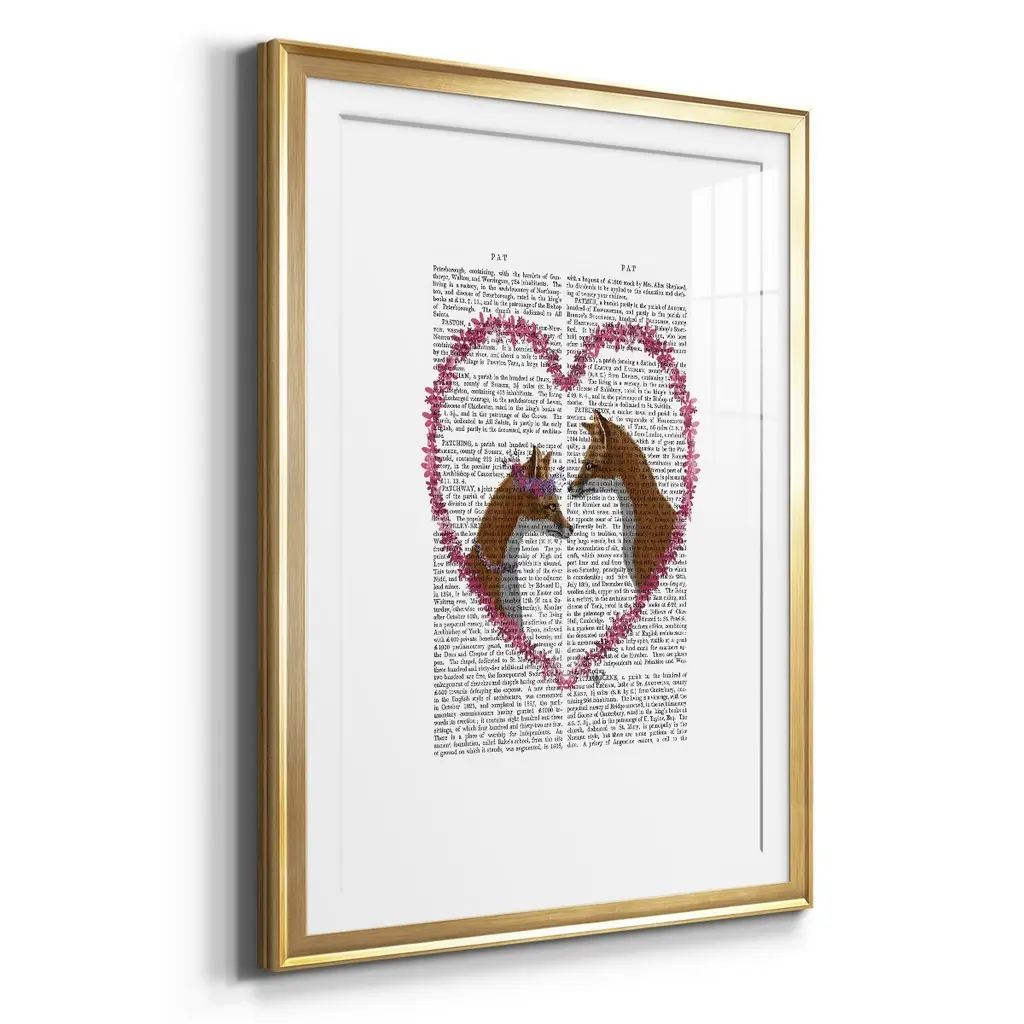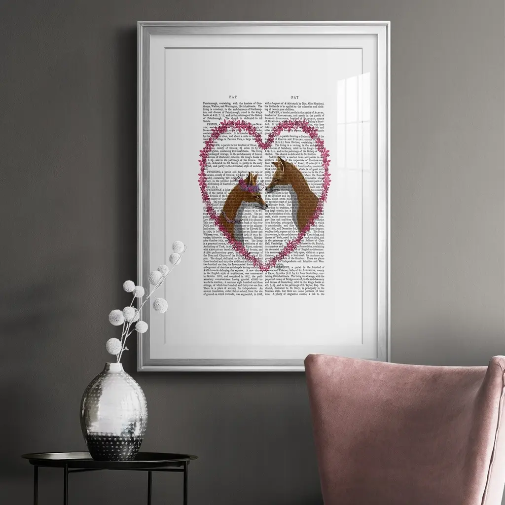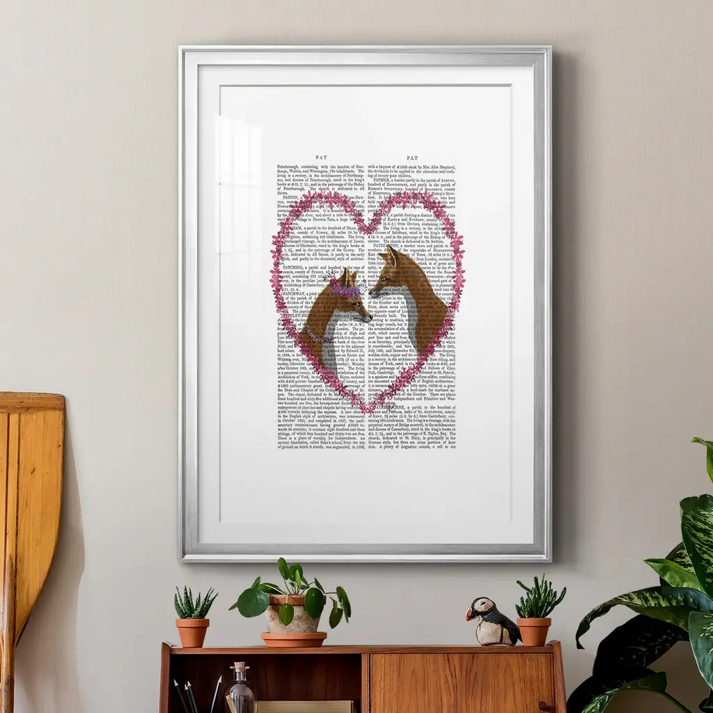Foxes In Pink Heart Premium Framed Print - Ready To Hang - 26.5x36.5 - Silver