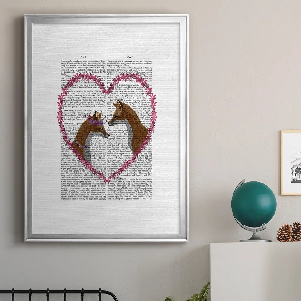 Foxes In Pink Heart Premium Framed Print - Ready To Hang - 30.5x42.5 - Black