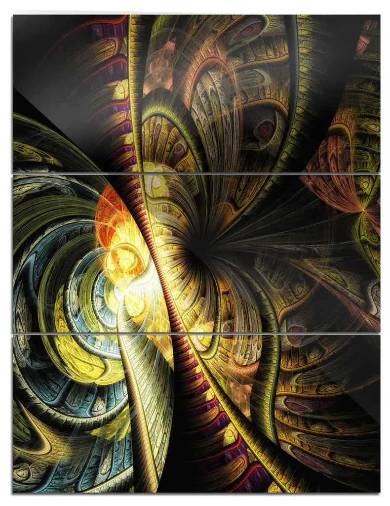 "Fractal 3-D Flower Fantasy" Metal Wall Art, 3 Panels, 36"x28"