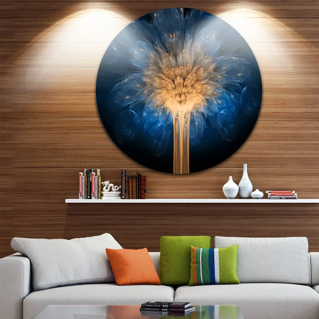 Bring Contemporary Abstraction to your home with this large Circle Metal wall art. This Fractal 3D Blue Dragon Flower Metal Artwork makes it the focal point of any room or office. - White Gloss Coating ensures colors are extra vibrant with light reflection.- Aluminum grade Sheet Metal with 1 inch mounting frame on the back giving the illusion that the artwork is floating on the wall..- Mounting Brackets are included along with instructions.- High Quality Digital images are created directly into a glossy aluminum panel producing a stunning and captivating print into the glossy finish of the metal.- Water, Fire and Scratch resistant HD Aluminum panels.- Looks better than any photo paper and guaranteed to last at least 20 years- Easy to clean with a microfiber cloth. Colors are far superior to regular Canvas Art. - Easy to Hang