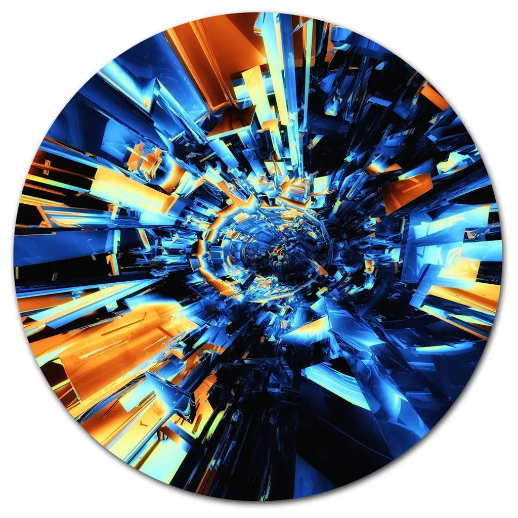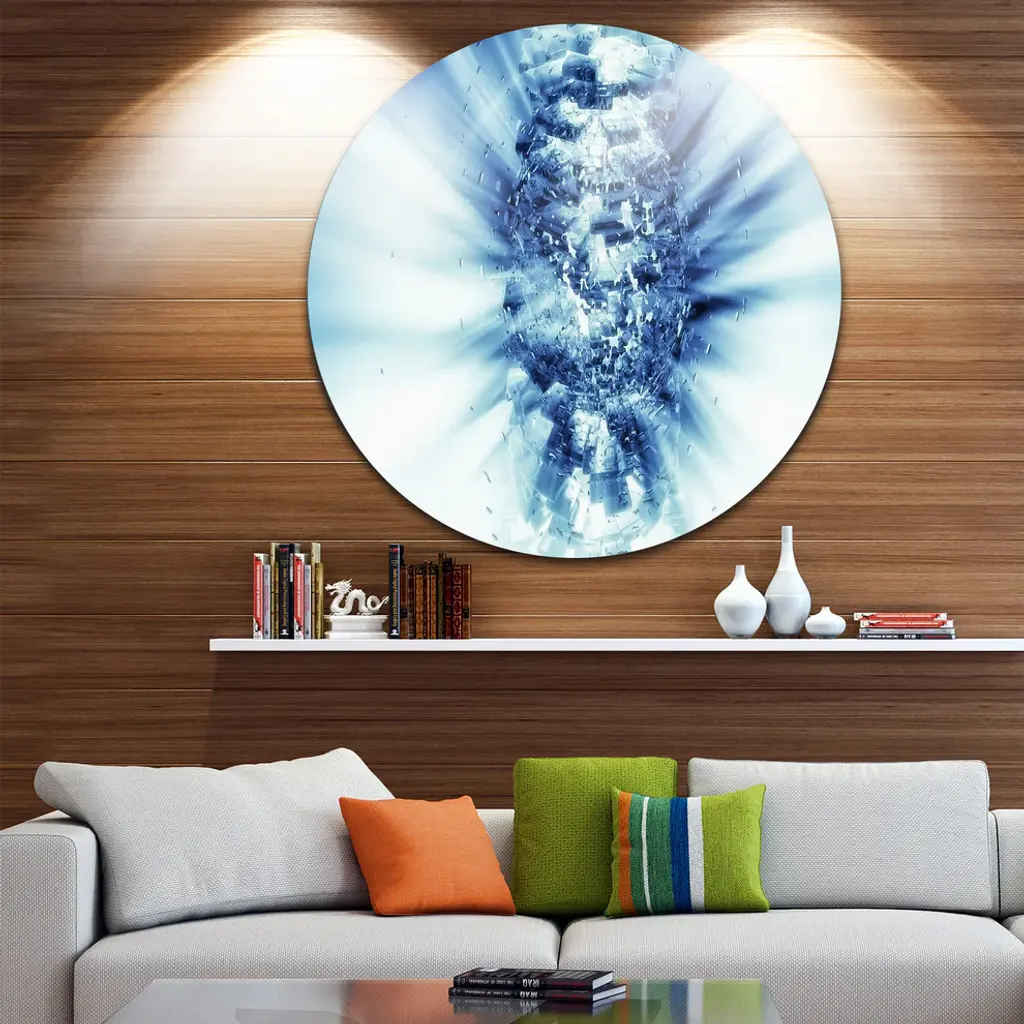 Fractal 3D Blue Splash Burst, Abstract Art Round Wall Art, 23"