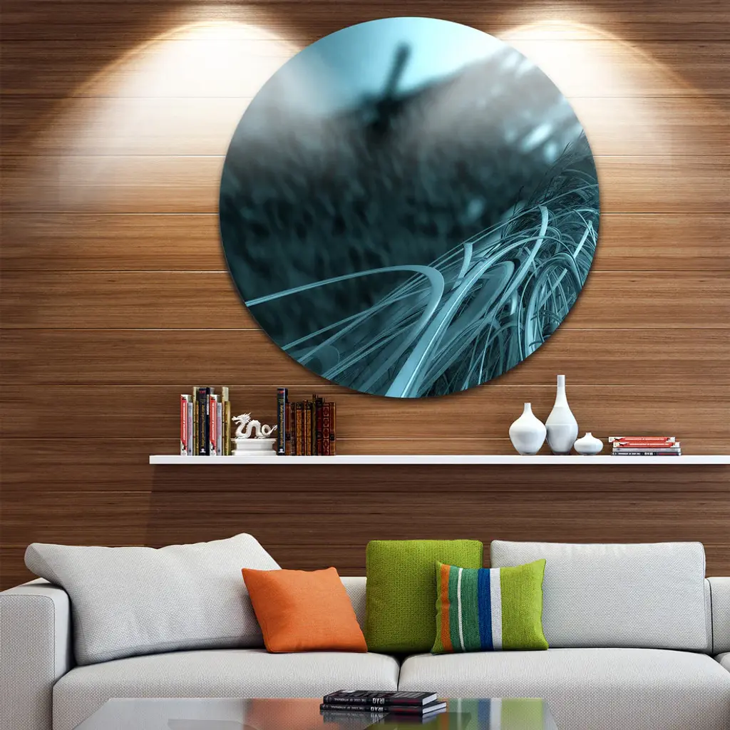 Fractal 3D Bottom Stripes, Abstract Art Large Disc Metal Wall Art, 36"