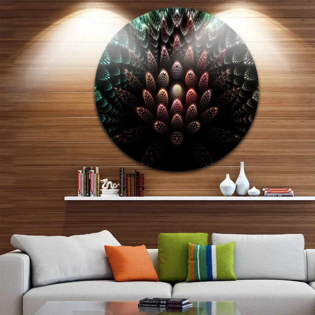 Bring Contemporary Abstraction to your home with this large Circle Metal wall art. This Fractal 3D Flower Fantasy Metal Artwork makes it the focal point of any room or office. - White Gloss Coating ensures colors are extra vibrant with light reflection.- Aluminum grade Sheet Metal with 1 inch mounting frame on the back giving the illusion that the artwork is floating on the wall..- Mounting Brackets are included along with instructions.- High Quality Digital images are created directly into a glossy aluminum panel producing a stunning and captivating print into the glossy finish of the metal.- Water, Fire and Scratch resistant HD Aluminum panels.- Looks better than any photo paper and guaranteed to last at least 20 years- Easy to clean with a microfiber cloth. Colors are far superior to regular Canvas Art. - Easy to Hang