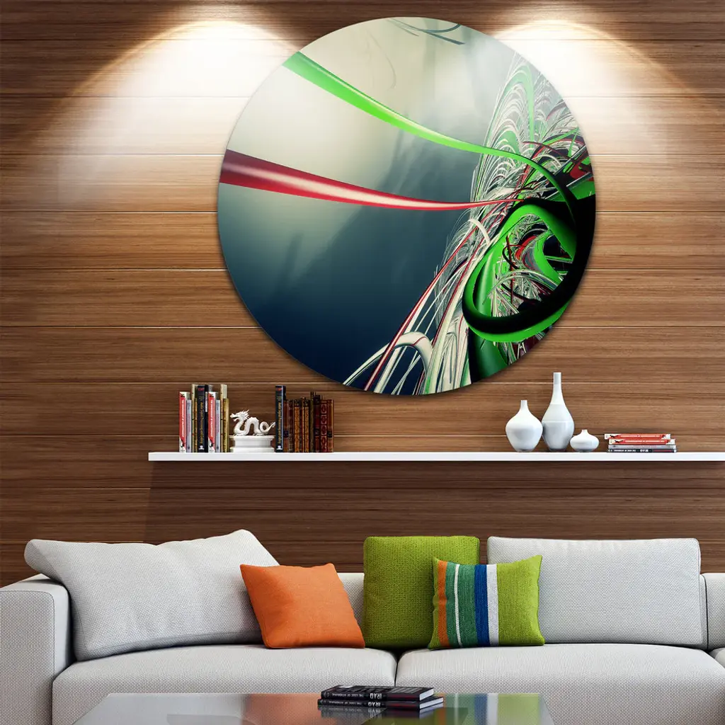 Fractal 3D Green Stripes, Abstract Art Large Disc Metal Wall Art, 23"