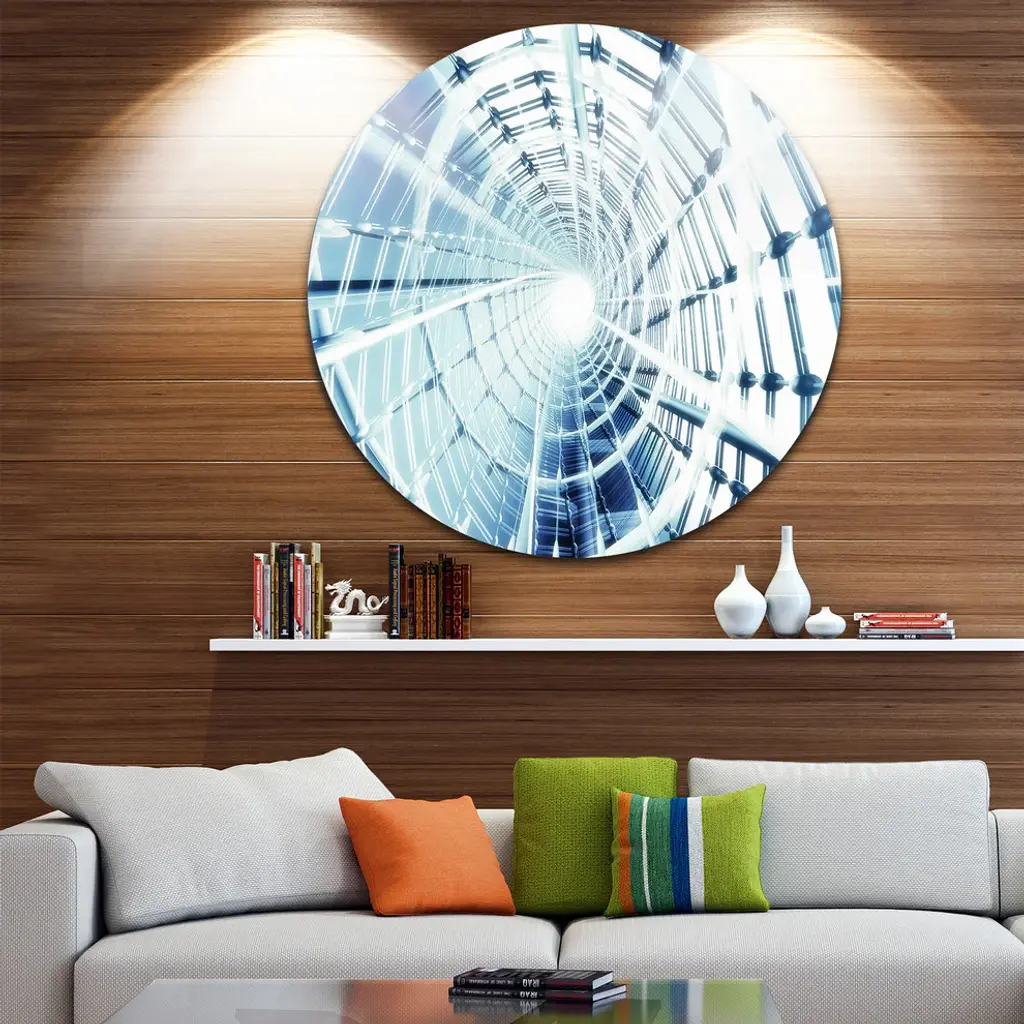 Bring Contemporary Abstraction to your home with this large Circle Metal wall art. This Fractal 3D Network Spiral Metal Artwork makes it the focal point of any room or office. - White Gloss Coating ensures colors are extra vibrant with light reflection.- Aluminum grade Sheet Metal with 1 inch mounting frame on the back giving the illusion that the artwork is floating on the wall..- Mounting Brackets are included along with instructions.- High Quality Digital images are created directly into a glossy aluminum panel producing a stunning and captivating print into the glossy finish of the metal.- Water, Fire and Scratch resistant HD Aluminum panels.- Looks better than any photo paper and guaranteed to last at least 20 years- Easy to clean with a microfiber cloth. Colors are far superior to regular Canvas Art. - Easy to Hang