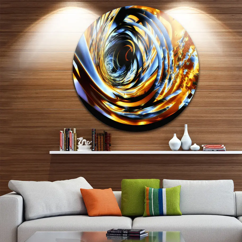 Fractal 3D Whirlwind Stripes, Abstract Art Round Metal Wall Art, 23"