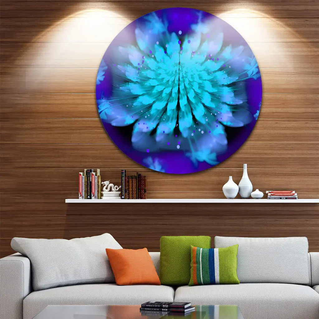 Fractal Blue Spread-Out Flower, Floral Art Round Metal Wall Art, 23"