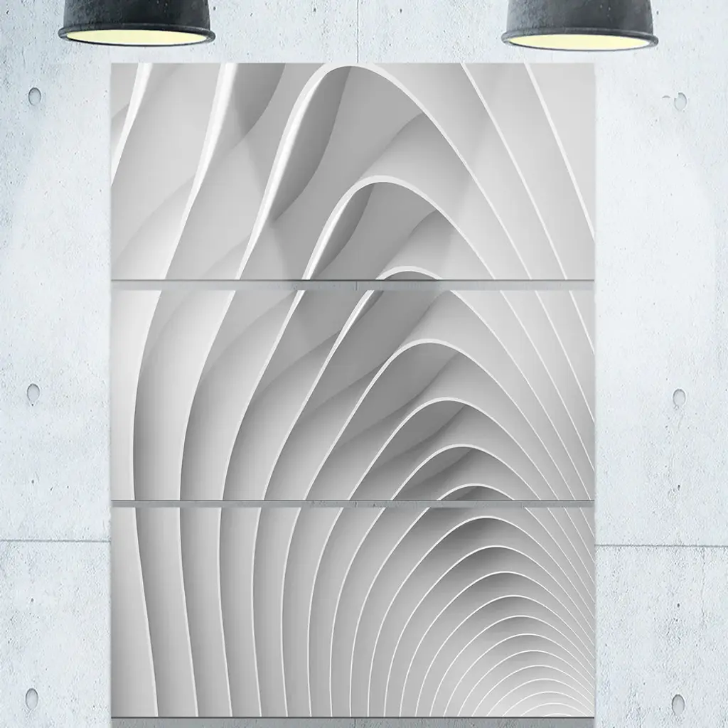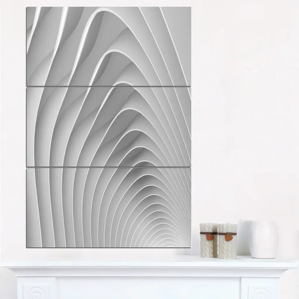 "Fractal Bulgy White 3-D Waves" Metal Wall Art, 3 Panels, 28"x36"