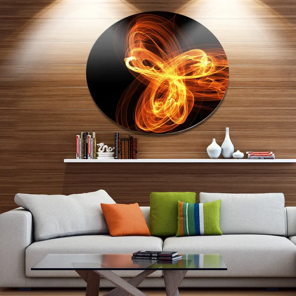 Fractal Fire Pattern Painted In Air, Abstract Disc Metal Wall Art, 23"