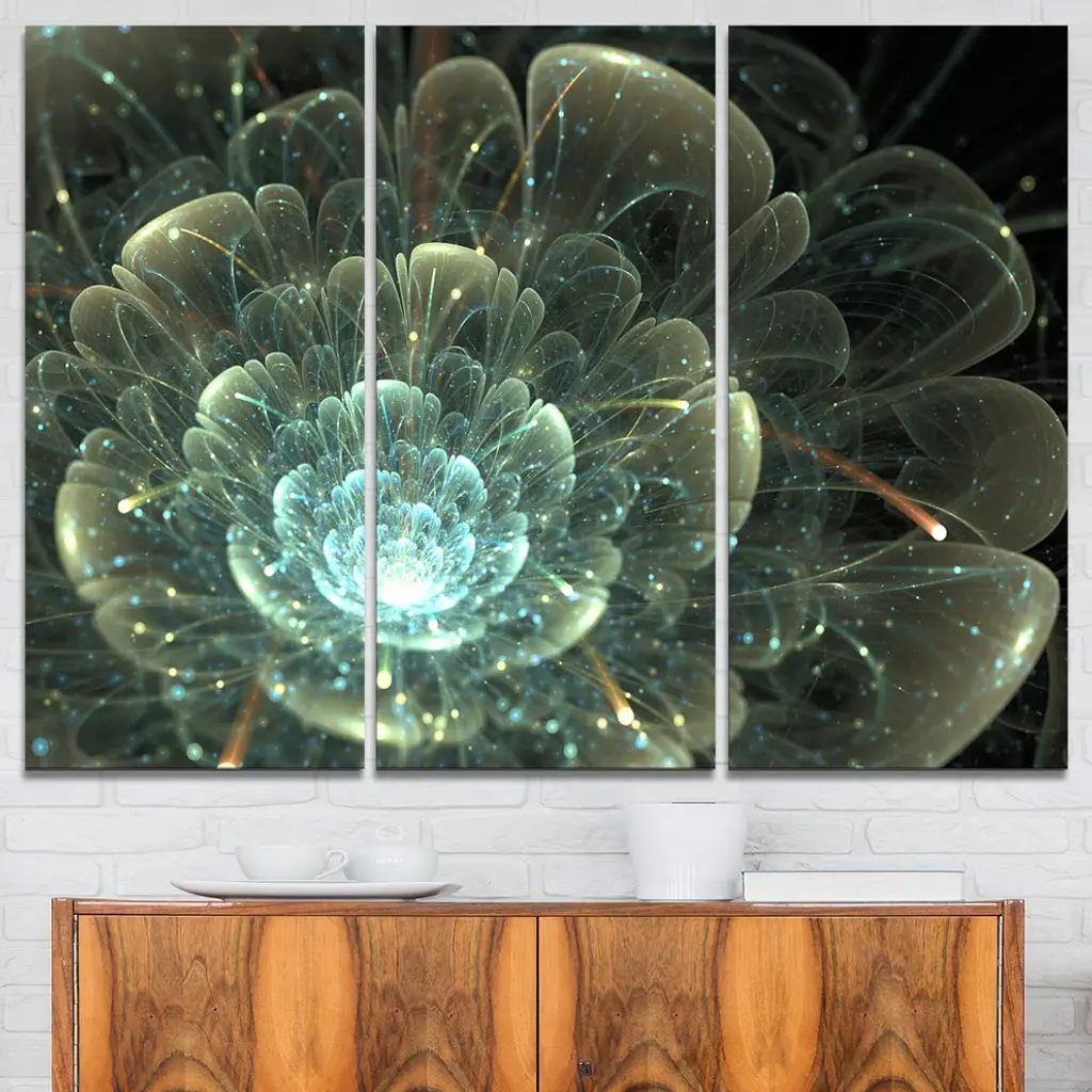 "Fractal Flower Blue And Gray" Digital Wall Art, 3 Panels, 36"x28"
