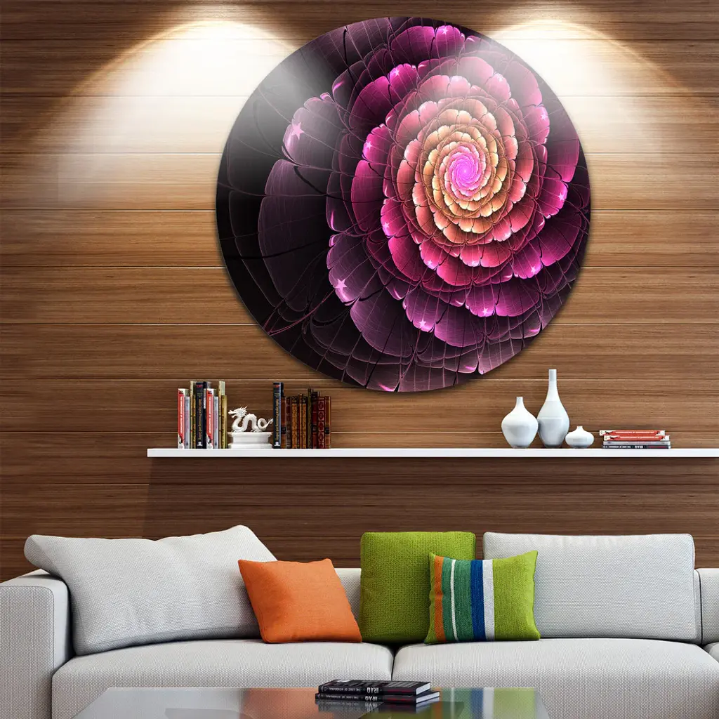 Bring Contemporary Abstraction to your home with this large Circle Metal wall art. This Fractal Flower Light Purple Digital Art Metal Artwork makes it the focal point of any room or office. - White Gloss Coating ensures colors are extra vibrant with light reflection.- Aluminum grade Sheet Metal with 1 inch mounting frame on the back giving the illusion that the artwork is floating on the wall..- Mounting Brackets are included along with instructions.- High Quality Digital images are created directly into a glossy aluminum panel producing a stunning and captivating print into the glossy finish of the metal.- Water, Fire and Scratch resistant HD Aluminum panels.- Looks better than any photo paper and guaranteed to last at least 20 years- Easy to clean with a microfiber cloth. Colors are far superior to regular Canvas Art. - Easy to Hang
