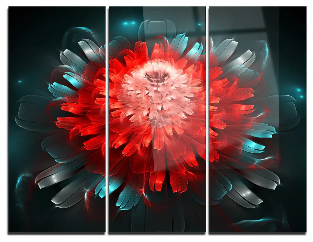 "Fractal Flower Macro Close-Up" Digital Metal Wall Art, 3 Panels, 36"x28"