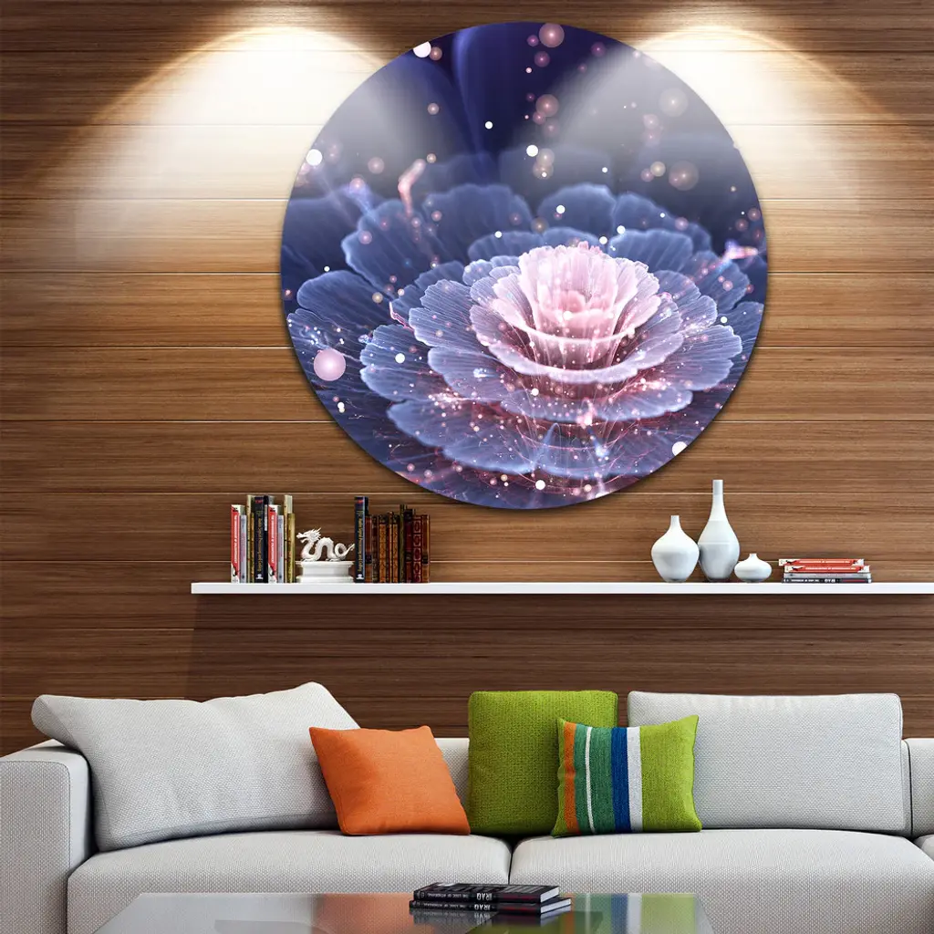 Fractal Flower Pink And Gray, Floral Digital Art Disc Metal Art, 23"