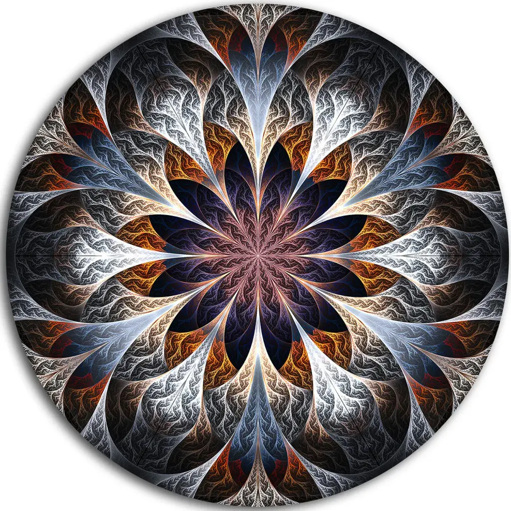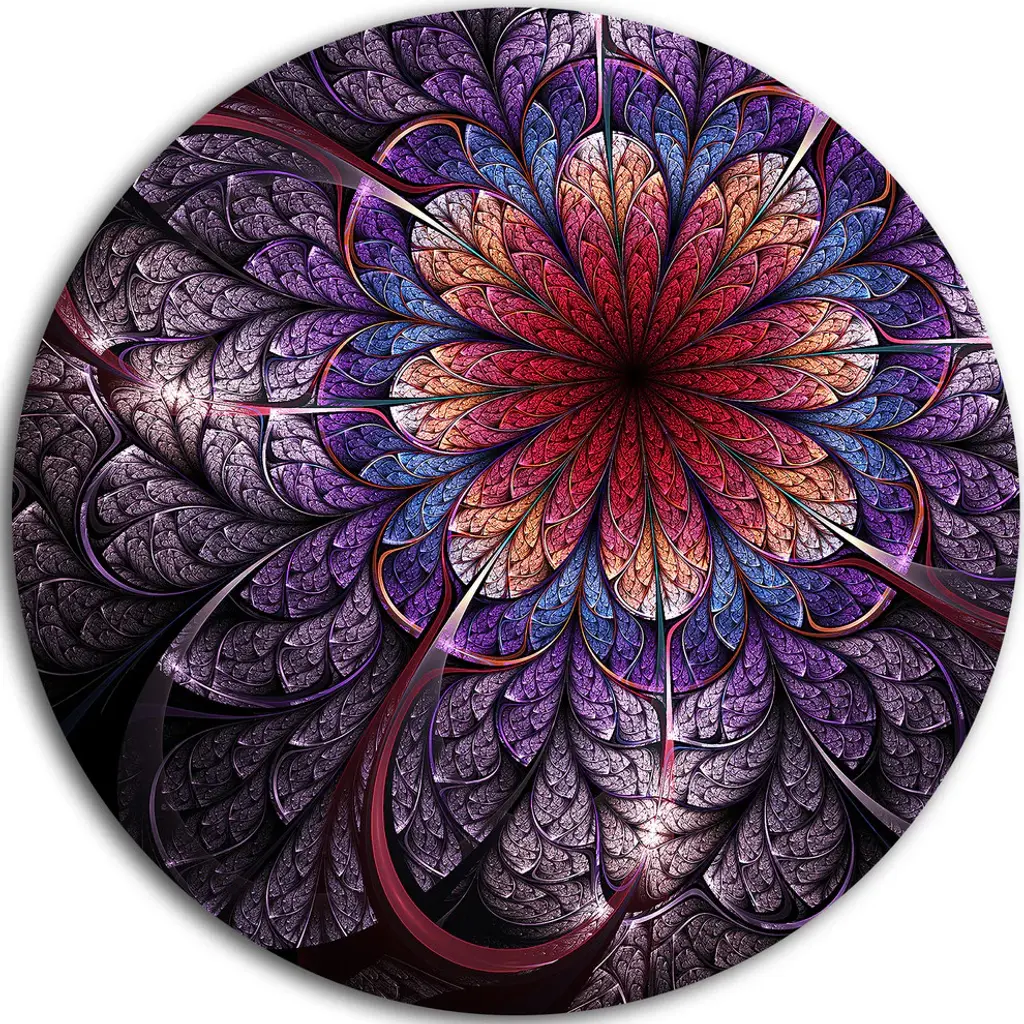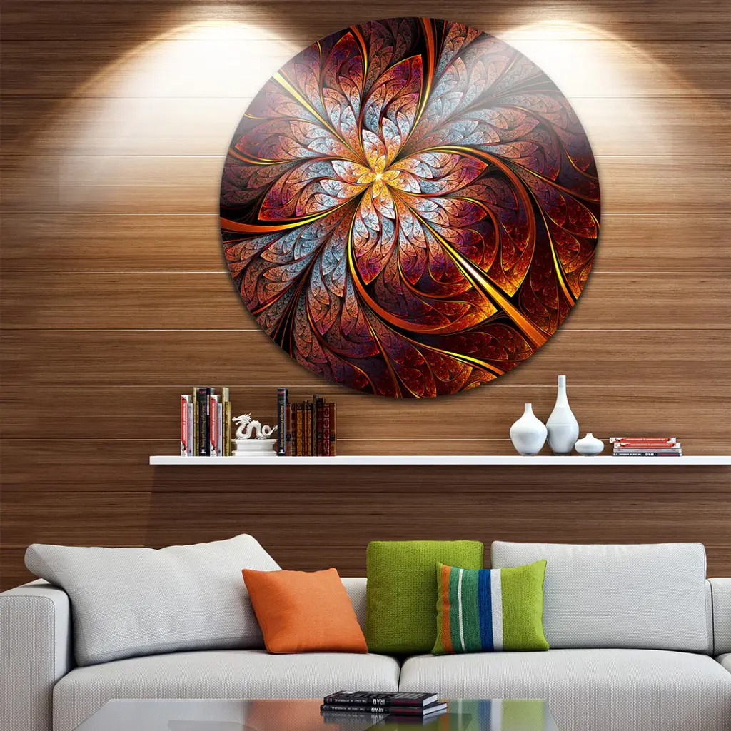 Bring Contemporary Abstraction to your home with this large Circle Metal wall art. This Fractal Flower Red and Blue Metal Artwork makes it the focal point of any room or office. - White Gloss Coating ensures colors are extra vibrant with light reflection.- Aluminum grade Sheet Metal with 1 inch mounting frame on the back giving the illusion that the artwork is floating on the wall..- Mounting Brackets are included along with instructions.- High Quality Digital images are created directly into a glossy aluminum panel producing a stunning and captivating print into the glossy finish of the metal.- Water, Fire and Scratch resistant HD Aluminum panels.- Looks better than any photo paper and guaranteed to last at least 20 years- Easy to clean with a microfiber cloth. Colors are far superior to regular Canvas Art. - Easy to Hang