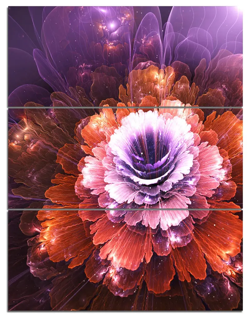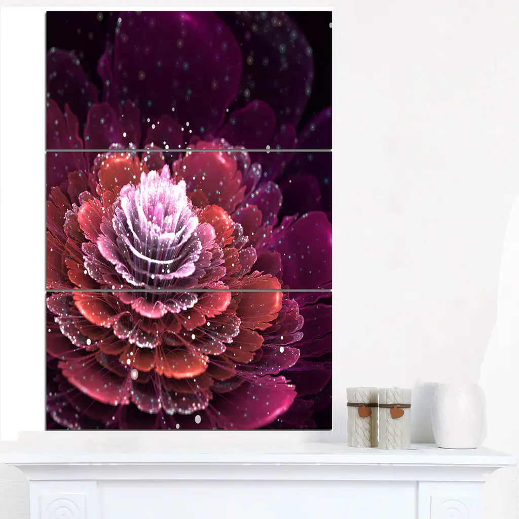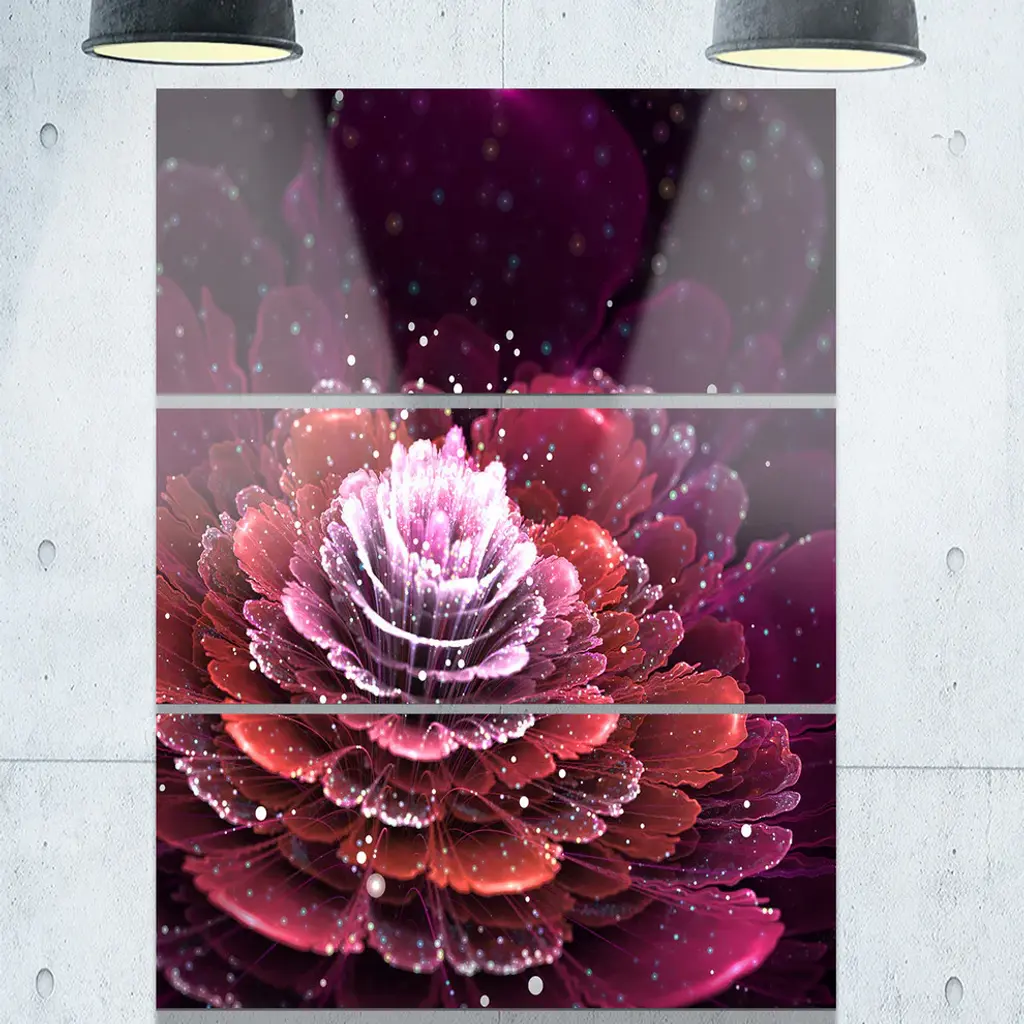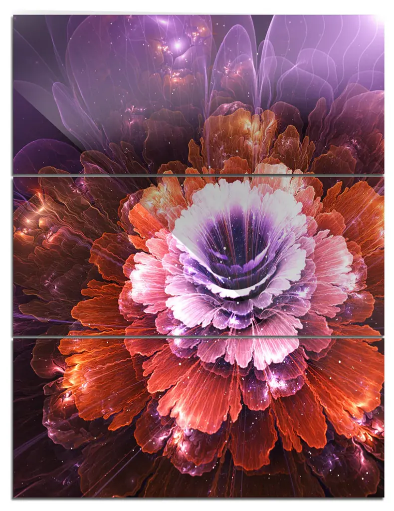 "Fractal Flower Red And White" Digital Metal Wall Art, 3 Panels, 28"x36"