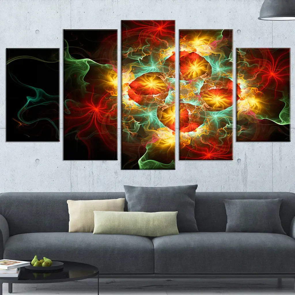 "Fractal Flower, Red And Yellow" Art Canvas Print, 5 Panels, 60"x32"