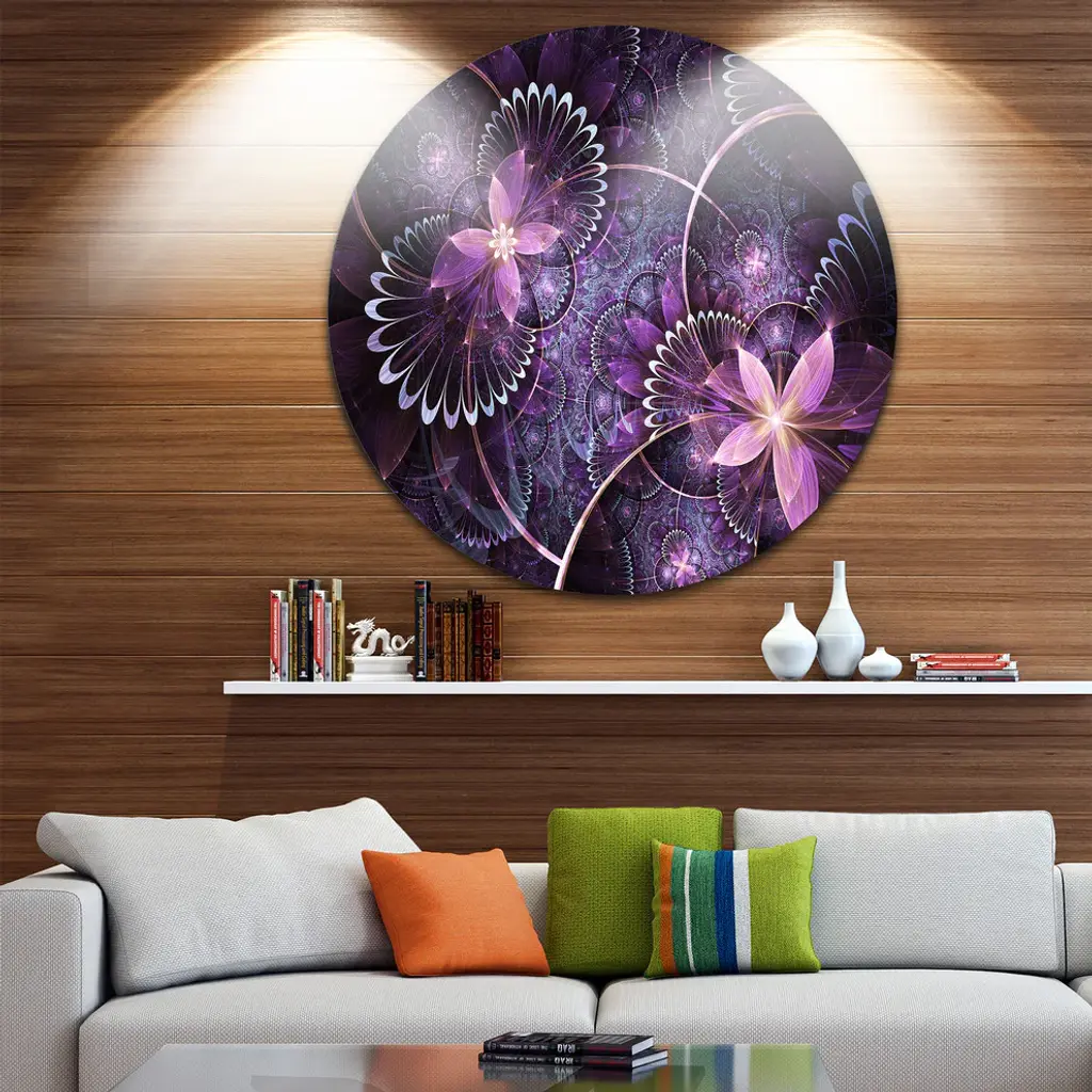 Bring Contemporary Abstraction to your home with this large Circle Metal wall art. This Fractal Flower Soft Purple Digital Art Metal Artwork makes it the focal point of any room or office. - White Gloss Coating ensures colors are extra vibrant with light reflection.- Aluminum grade Sheet Metal with 1 inch mounting frame on the back giving the illusion that the artwork is floating on the wall..- Mounting Brackets are included along with instructions.- High Quality Digital images are created directly into a glossy aluminum panel producing a stunning and captivating print into the glossy finish of the metal.- Water, Fire and Scratch resistant HD Aluminum panels.- Looks better than any photo paper and guaranteed to last at least 20 years- Easy to clean with a microfiber cloth. Colors are far superior to regular Canvas Art. - Easy to Hang