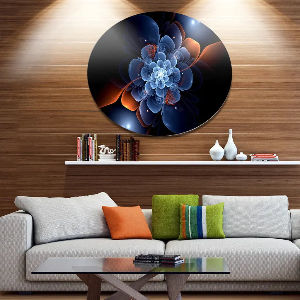 Fractal Flower With Orange Flame, Flower Round Wall Art, 36"