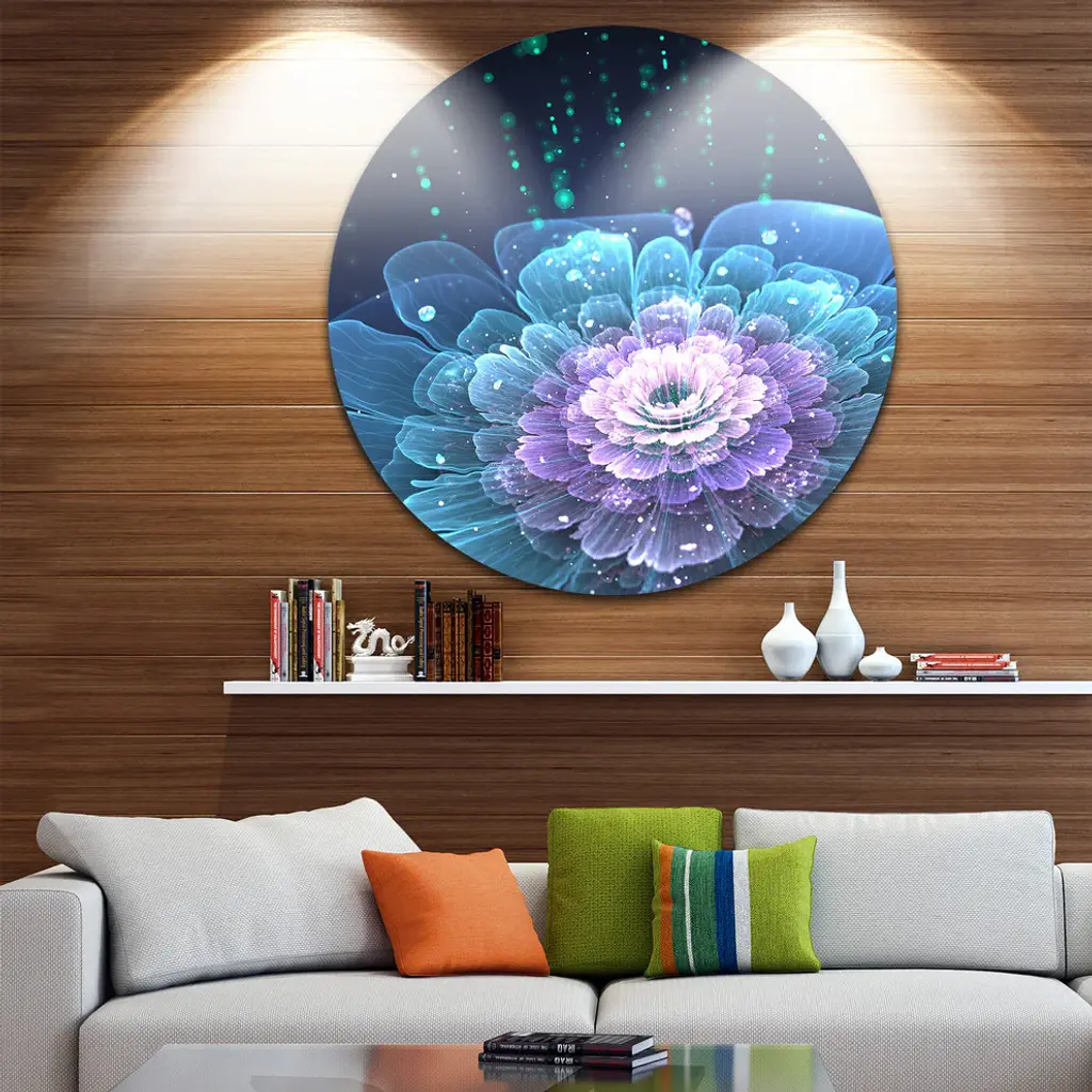 Fractal Flower With Water Drops, Floral Disc Metal Wall Art, 38"