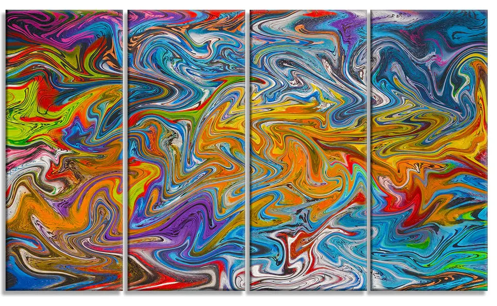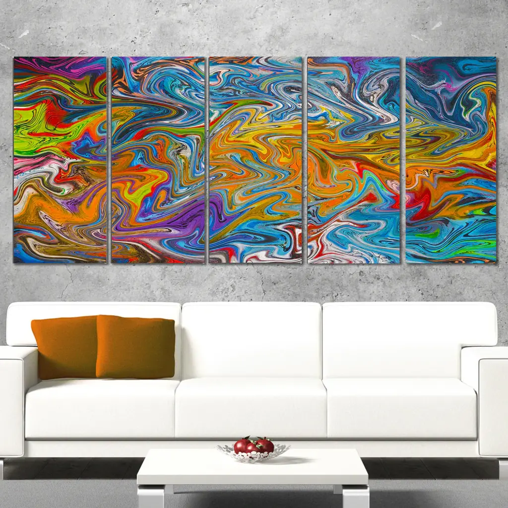 "Fractal Flowing Colors" Abstract Art Canvas Print, 5 Panels, 60"x28"