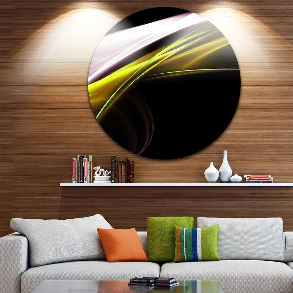 Bring Contemporary Abstraction to your home with this large Circle Metal wall art. This Fractal Lines Golden White Metal Artwork makes it the focal point of any room or office. - White Gloss Coating ensures colors are extra vibrant with light reflection.- Aluminum grade Sheet Metal with 1 inch mounting frame on the back giving the illusion that the artwork is floating on the wall..- Mounting Brackets are included along with instructions.- High Quality Digital images are created directly into a glossy aluminum panel producing a stunning and captivating print into the glossy finish of the metal.- Water, Fire and Scratch resistant HD Aluminum panels.- Looks better than any photo paper and guaranteed to last at least 20 years- Easy to clean with a microfiber cloth. Colors are far superior to regular Canvas Art. - Easy to Hang