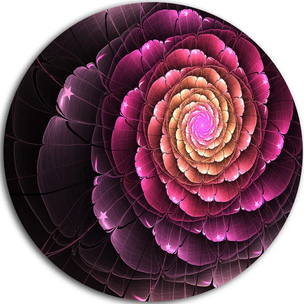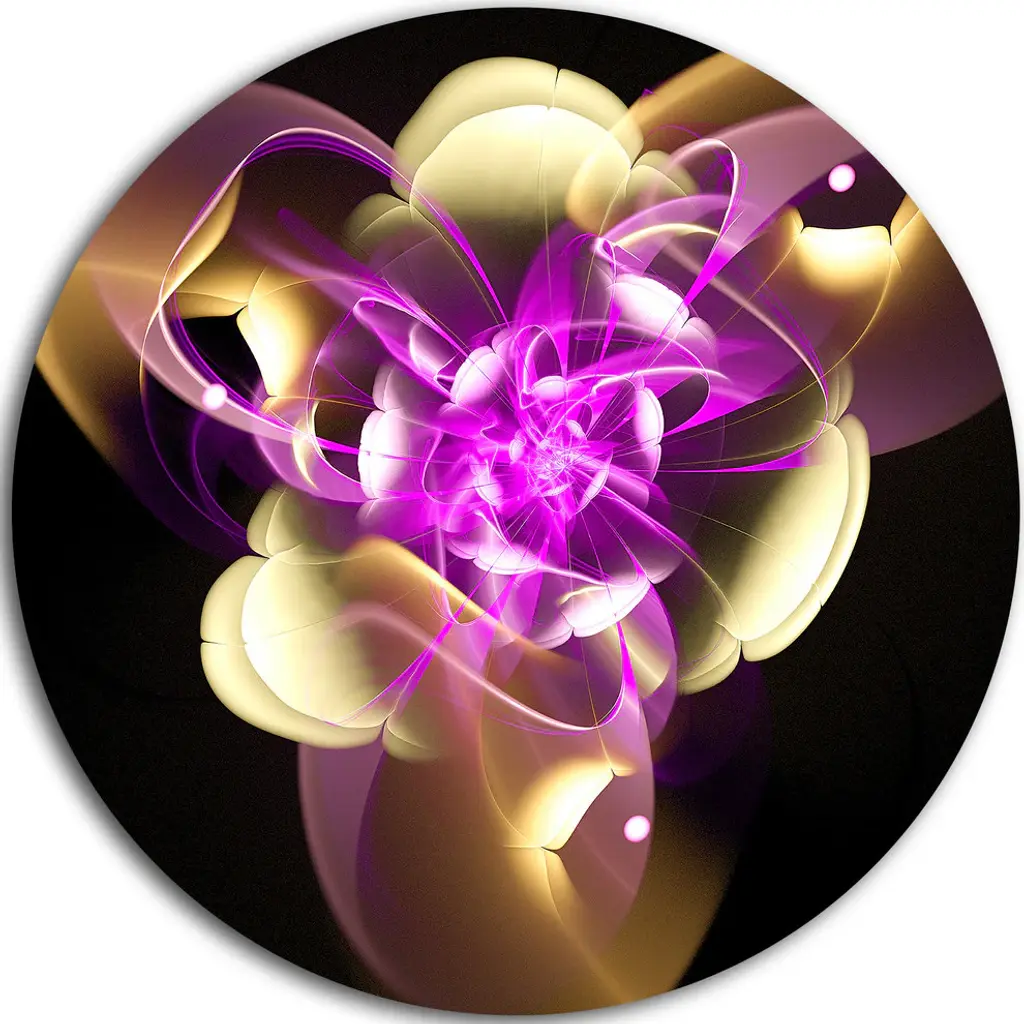 Fractal Purple Flower In Dark, Floral Abstract Disc Metal Wall Art, 23"