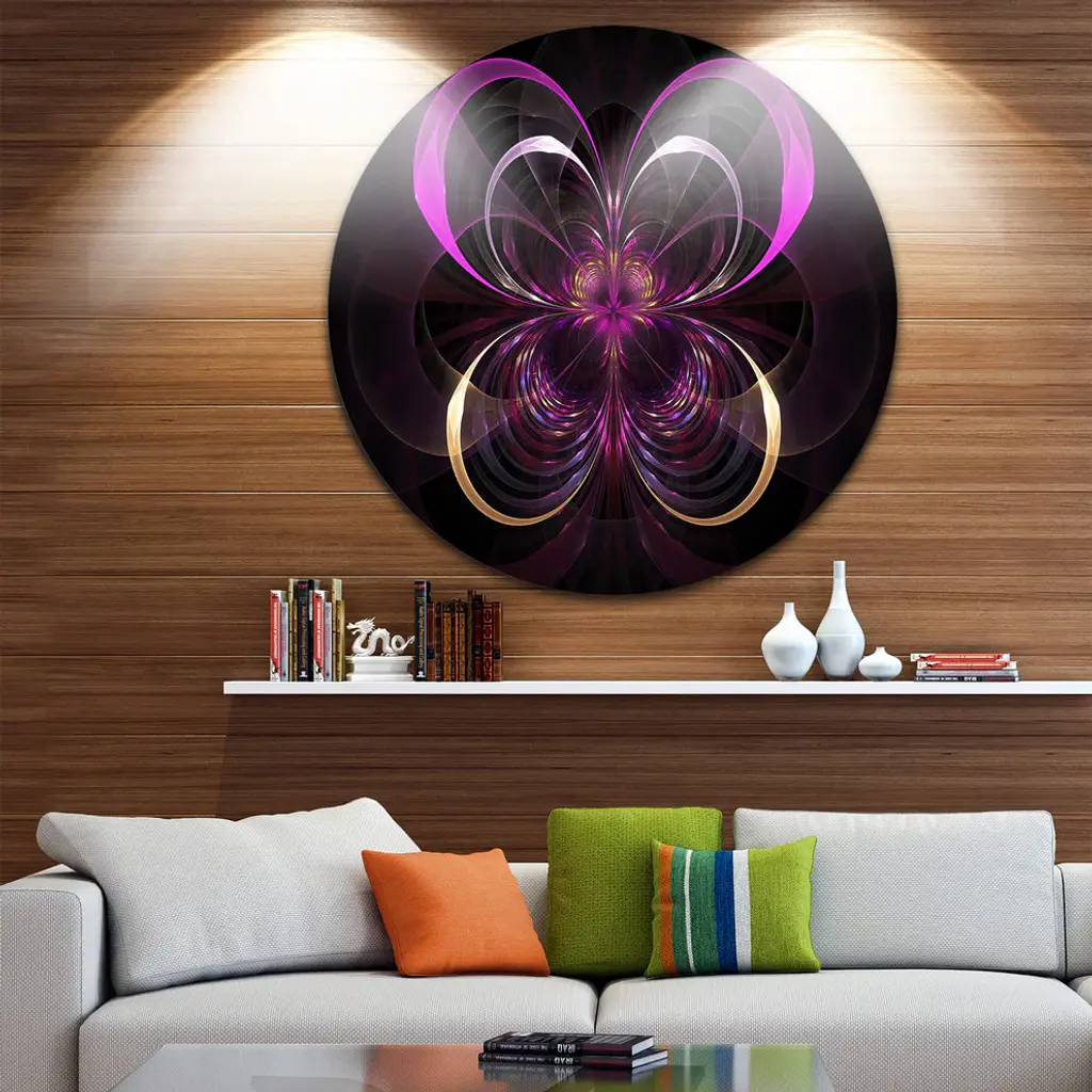 Bring Contemporary Abstraction to your home with this large Circle Metal wall art. This Fractal Purple Flower in Dark Metal Artwork makes it the focal point of any room or office. - White Gloss Coating ensures colors are extra vibrant with light reflection.- Aluminum grade Sheet Metal with 1 inch mounting frame on the back giving the illusion that the artwork is floating on the wall..- Mounting Brackets are included along with instructions.- High Quality Digital images are created directly into a glossy aluminum panel producing a stunning and captivating print into the glossy finish of the metal.- Water, Fire and Scratch resistant HD Aluminum panels.- Looks better than any photo paper and guaranteed to last at least 20 years- Easy to clean with a microfiber cloth. Colors are far superior to regular Canvas Art. - Easy to Hang