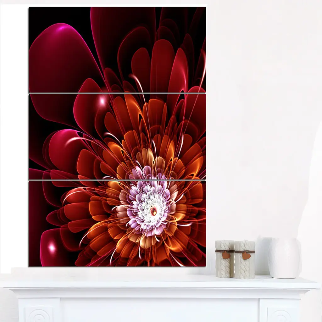 "Fractal Red And Yellow Flower" Digital Metal Wall Art, 3 Panels, 28"x36"