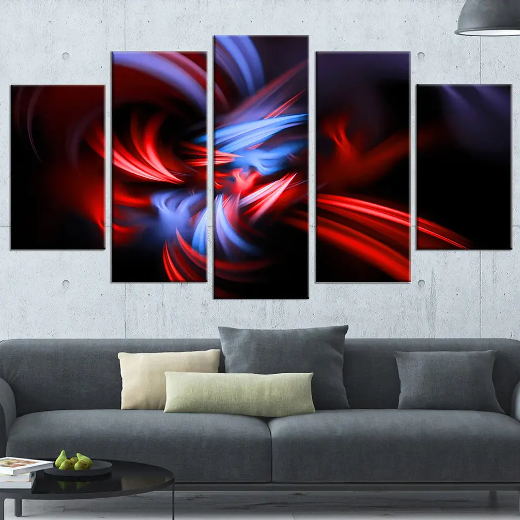 "Fractal Red Connected Stripes" Abstract Art Canvas Print, 5 Panels, 60"x32"