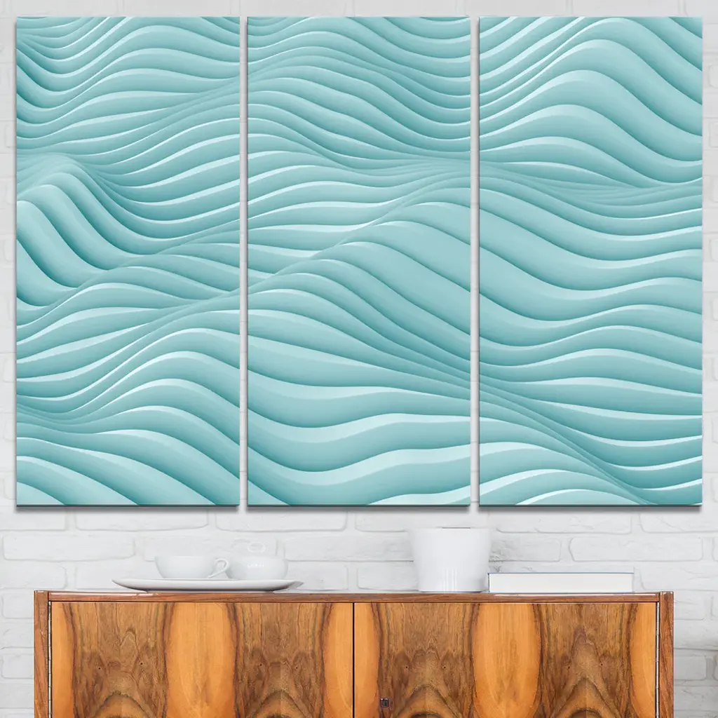 "Fractal Rippled Blue 3-D Waves" Art Canvas Print, 3 Panels, 36"x28"
