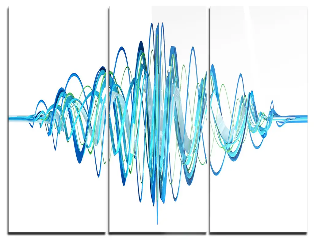 "Fractal Rippled Blue 3-D Waves" Metal Wall Art, 3 Panels, 36"x28"