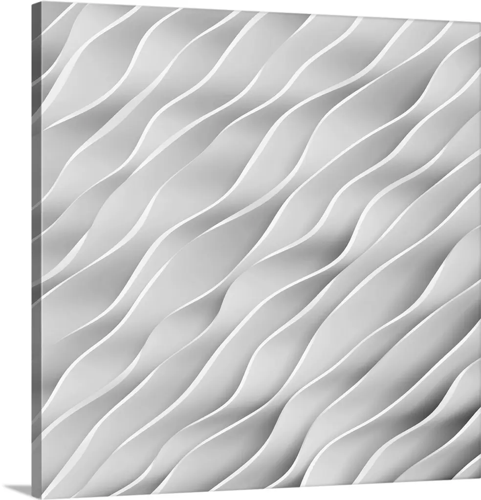 Fractal Rippled White 3D Waves, Abstract Art Disc Metal Artwork, 36"