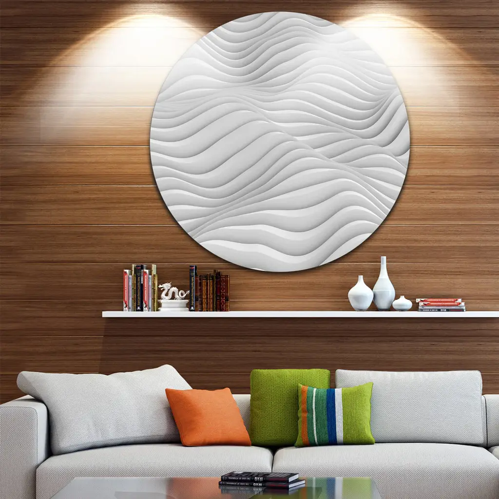 Bring Contemporary Abstraction to your home with this large Circle Metal wall art. This Fractal Rippled White 3D Waves Metal Artwork makes it the focal point of any room or office. - White Gloss Coating ensures colors are extra vibrant with light reflection.- Aluminum grade Sheet Metal with 1 inch mounting frame on the back giving the illusion that the artwork is floating on the wall..- Mounting Brackets are included along with instructions.- High Quality Digital images are created directly into a glossy aluminum panel producing a stunning and captivating print into the glossy finish of the metal.- Water, Fire and Scratch resistant HD Aluminum panels.- Looks better than any photo paper and guaranteed to last at least 20 years- Easy to clean with a microfiber cloth. Colors are far superior to regular Canvas Art. - Easy to Hang