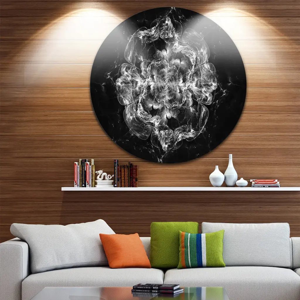 Bring Contemporary Abstraction to your home with this large Circle Metal wall art. This Fractal Silver Flower Explosion Metal Artwork makes it the focal point of any room or office. - White Gloss Coating ensures colors are extra vibrant with light reflection.- Aluminum grade Sheet Metal with 1 inch mounting frame on the back giving the illusion that the artwork is floating on the wall..- Mounting Brackets are included along with instructions.- High Quality Digital images are created directly into a glossy aluminum panel producing a stunning and captivating print into the glossy finish of the metal.- Water, Fire and Scratch resistant HD Aluminum panels.- Looks better than any photo paper and guaranteed to last at least 20 years- Easy to clean with a microfiber cloth. Colors are far superior to regular Canvas Art. - Easy to Hang