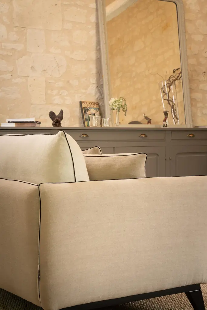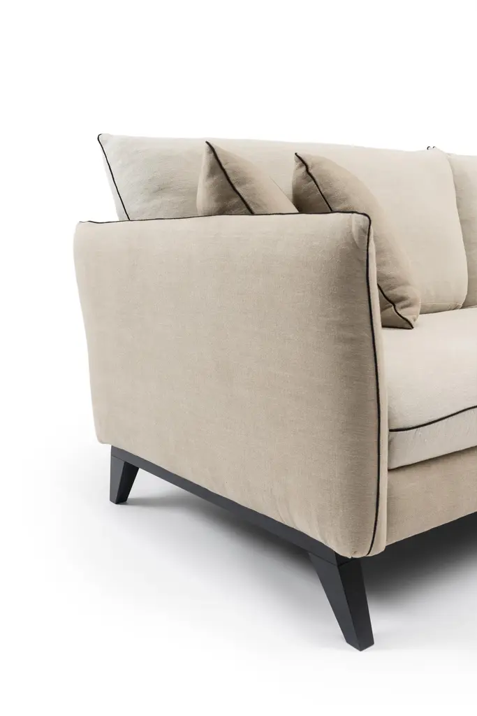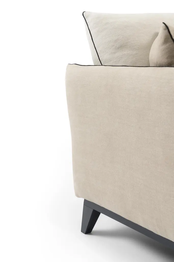 Fragance Sofa by RALPH MDimensions: W 220 x D 92 x H 88 cm. Materials: Solid beech, Particle boards panels, Fabric.Details: Frame: Solid beech and particle boards panels.Seat springing: Interlaced elastic webbing.Seat Cushion: High resilience 37kg/m3 foam wrapped in contact padding. Depth-adjustable strap and buckle fixing.Back Cushion: Mixture of feathers and silicone hollow fibre beneath quilted percal cotton.Finish: Piping.Feet: Solid beech.Ralph M:In its French workshop, Ralph M. creates and crafts personalisable top-quality sofas and armchairs. A bold challenge. And one achieved successfully for more than 30 years. The Ralph M. team fulfils the essential challenge of the Made in France label: guaranteed quality through the ability to combine the best materials with expertise and open-minded flexibility.For more than 30 years, Ralph M. has used its expertise and attention to detail in creating pieces that draw on the latest trends in furniture. But they also enjoy exercising their own bold originality. In fact, they like it so much that they always want to go further in asserting their unique aesthetic.The new RALPH M. range embodies their desire to take creative risks and enhance the standard pieces of the furniture repertoire by revisiting them.They believe that design is as valid an artistic expression as literature, painting and music. The RALPH M. brand makes everything possible. It is in many ways our laboratory in which luxury, comfort and good design come together to create timeless pieces with their own distinct identity.