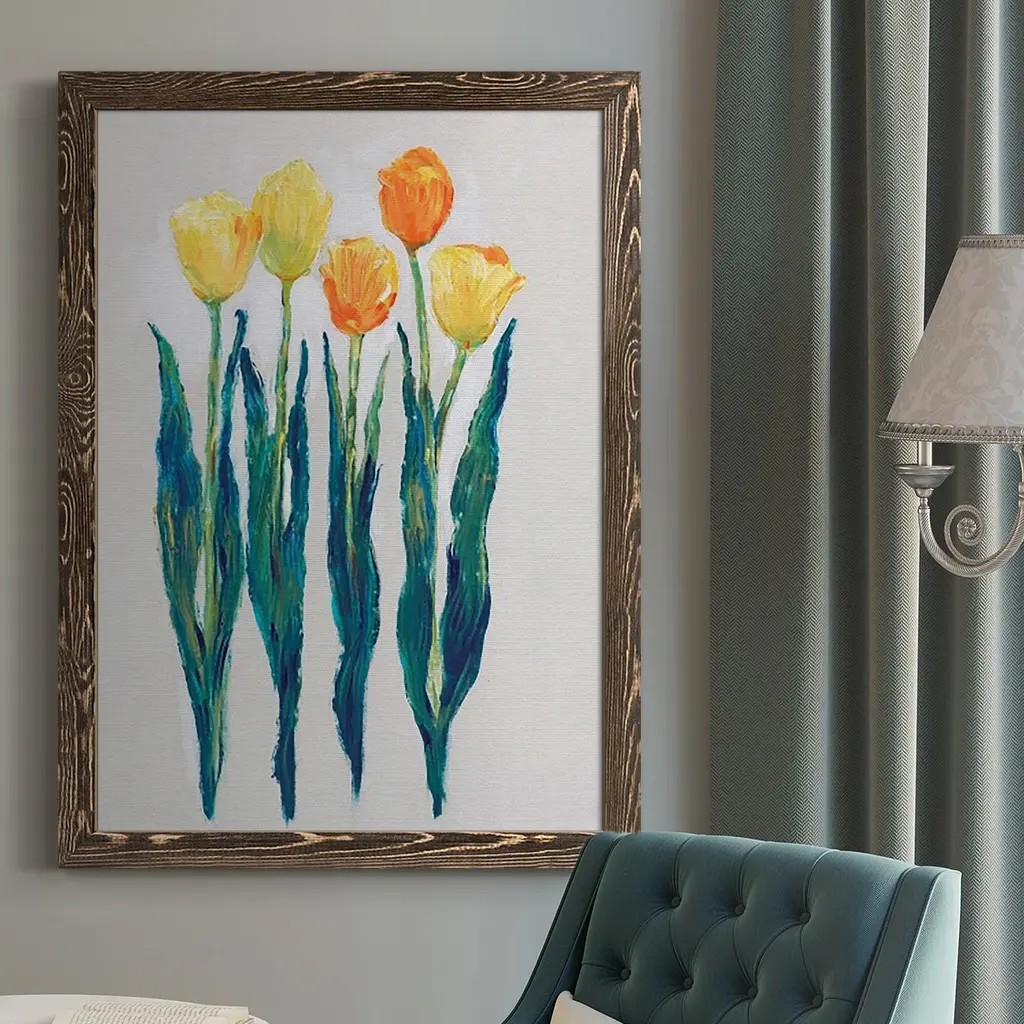 Vibrant orange blossoms bloom with painterly depth against a soft, weathered backdrop, creating a striking balance of warmth and elegance. This floral artwork radiates energy, grace, and a touch of modern sophistication. Our Gallery Wrap Canvas Prints are proudly assembled with high quality materials in California, USA. Each piece is printed on a thick, archival grade canvas using Giclee technology. It is then hand-stretched by our experienced artisans over solid wood bars, which will not warp over time. The final product is a piece personally crafted for you to confidently display on your wall. Care and Assembly: Ensure that the location of your piece has little to no exposure to heat, sunlight, and moisture. Wipe clean, only if needed. Each piece includes hanging hardware to hang on your wall vertically.