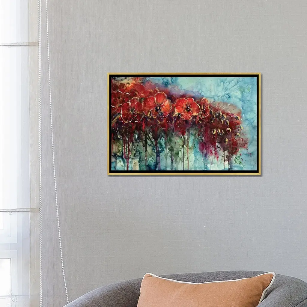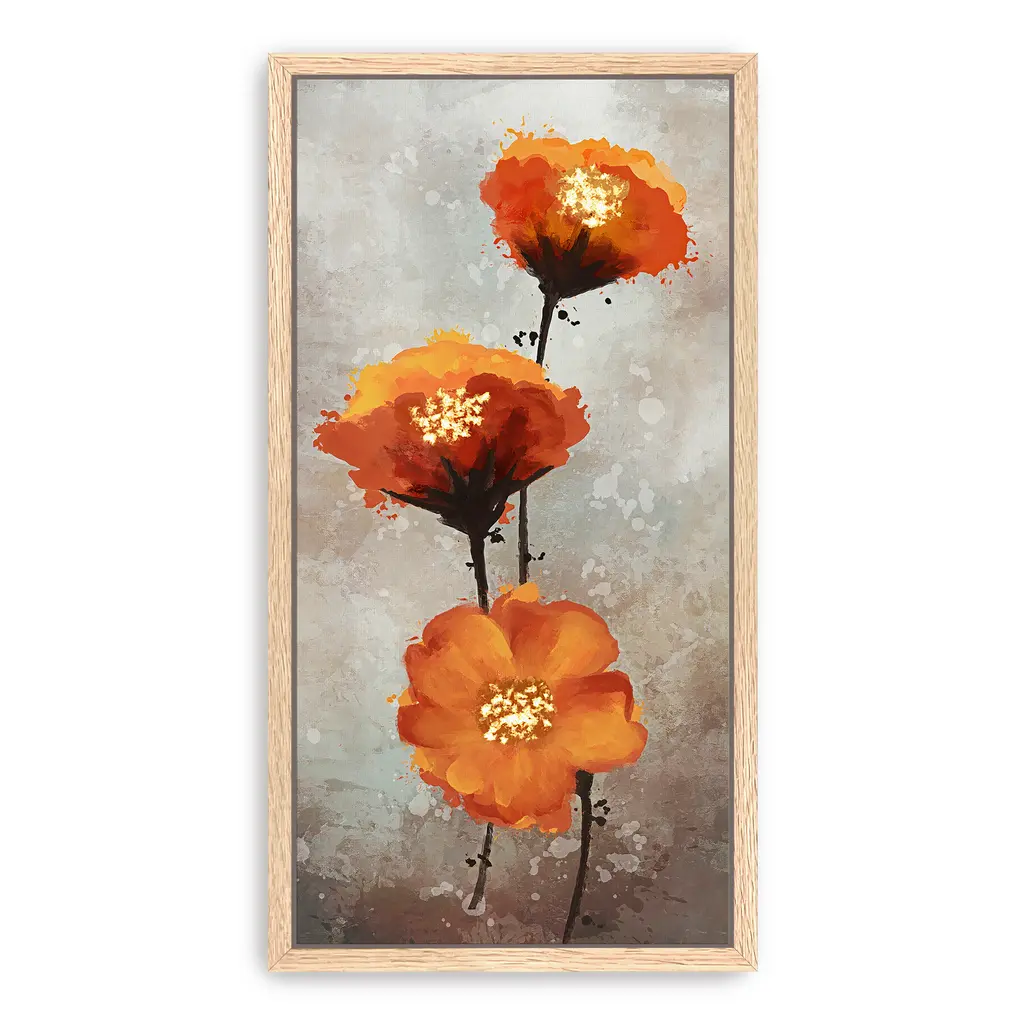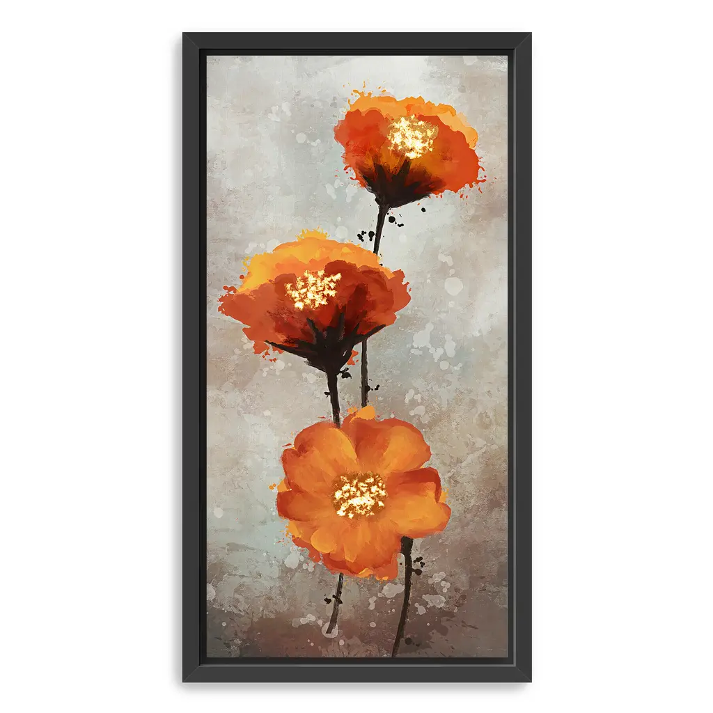 Vibrant orange blossoms bloom with painterly depth against a soft, weathered backdrop, creating a striking balance of warmth and elegance. This floral artwork radiates energy, grace, and a touch of modern sophistication. Our Gallery Wrap Canvas Prints are proudly assembled with high quality materials in California, USA. Each piece is printed on a thick, archival grade canvas using Giclee technology. It is then hand-stretched by our experienced artisans over solid wood bars, which will not warp over time. The final product is a piece personally crafted for you to confidently display on your wall. Care and Assembly: Ensure that the location of your piece has little to no exposure to heat, sunlight, and moisture. Wipe clean, only if needed. Each piece includes hanging hardware to hang on your wall vertically.