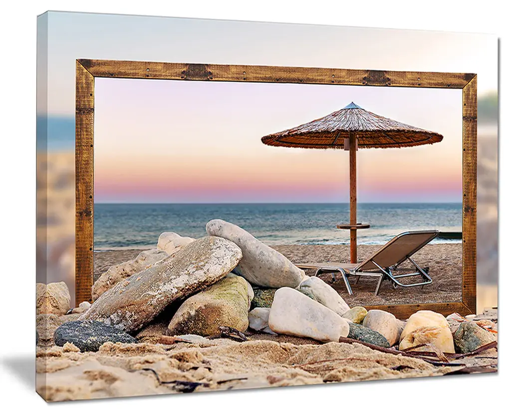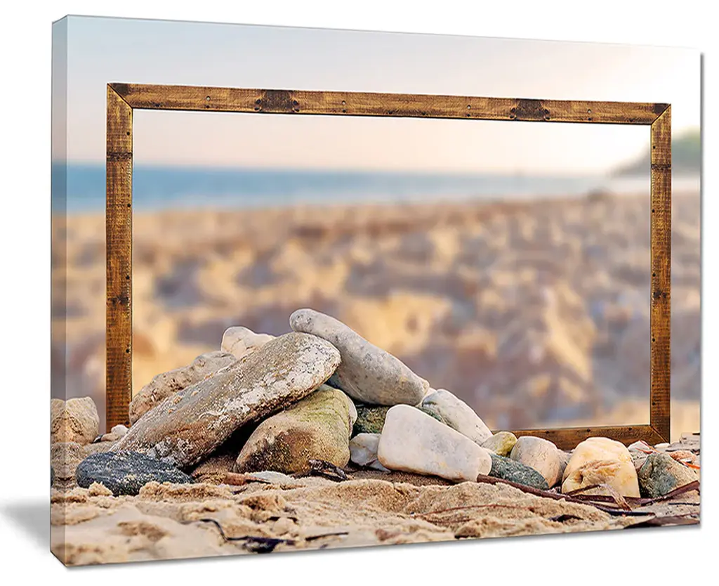 The Framed Beach Rocks canvas art print is sure to make an impression on anyone who sees it. This artwork is gallery wrapped around a 1-inch solid wood frame and arrives carefully packaged and entirely ready to hang on the wall. Design Art only uses the highest resolution and pigments to ensure a crisp colorful print that is never faded or pixelated. This artwork is sure to be a conversation starter in any home or office.