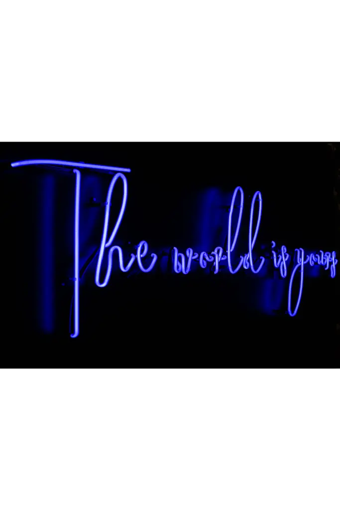 Framed Blue Neon Artwork | Andrew Martin World Is Yours
