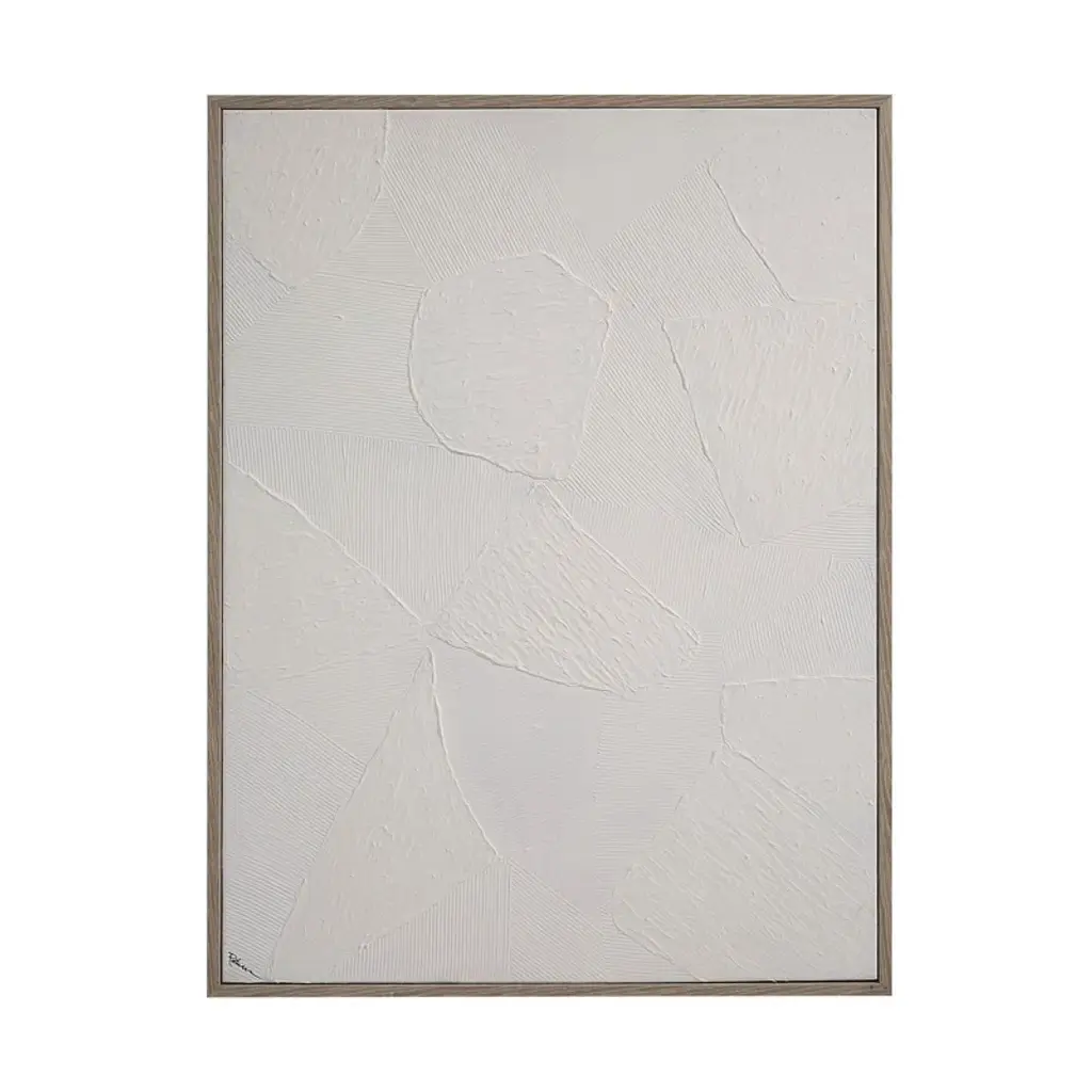 Introducing the Devi Canvas Wall Art with a White Oak Frame, a decor piece that exudes refinement through its subtle details and balanced color scheme. Whether displayed on a vivid or intricately patterned wall, the artwork captivates the viewer's attention, not requiring any additional adornment. In contrast, when positioned against a white backdrop, the canvas painting effortlessly merges with the surroundings, putting the focus on its textured brushstrokes.